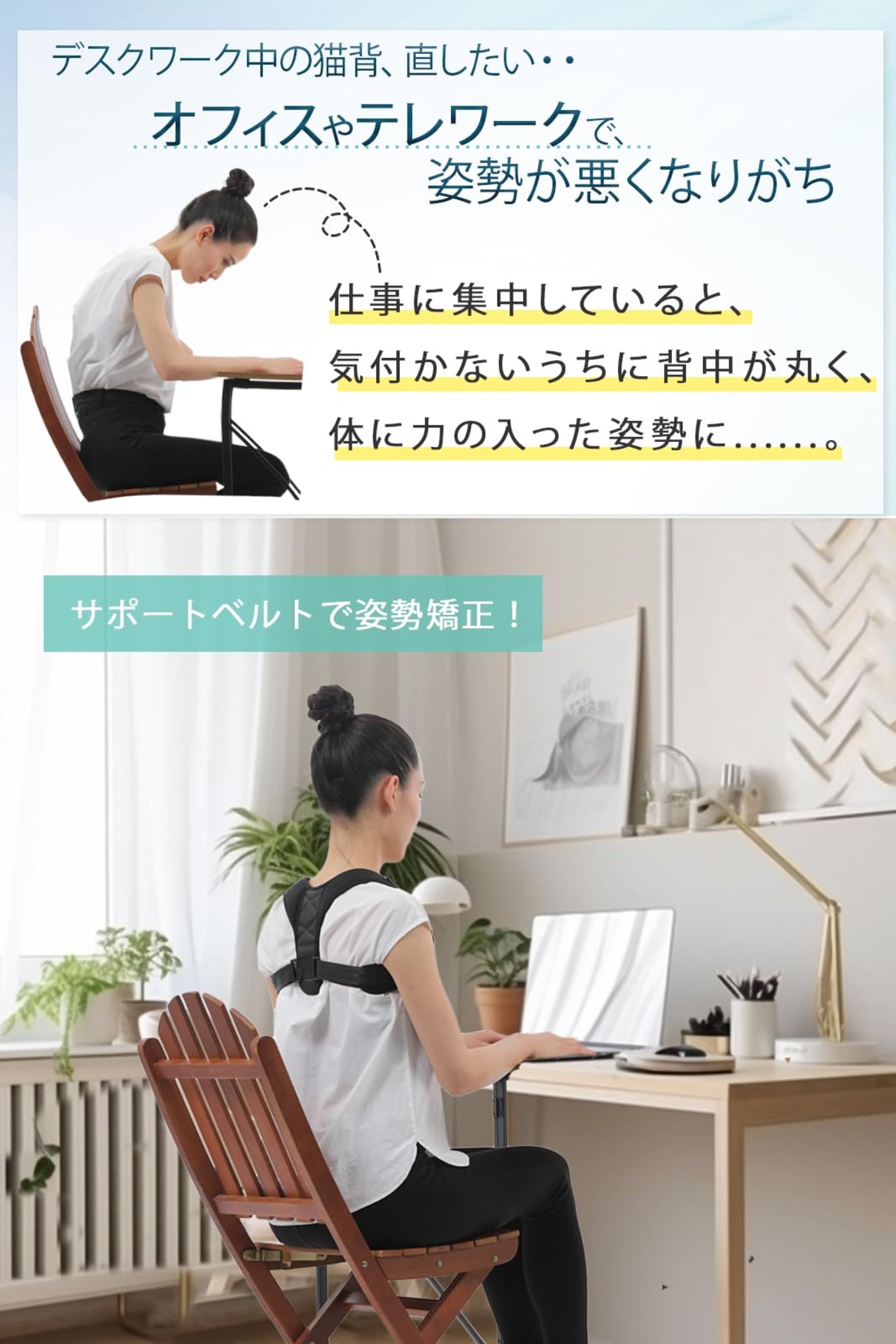 姿勢サポーター 【現役整体師監修】 姿勢 ベルト 猫背 痛くなりにくい素材 男女兼用 【デスクワーク専用】