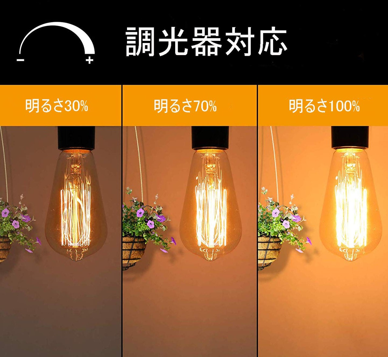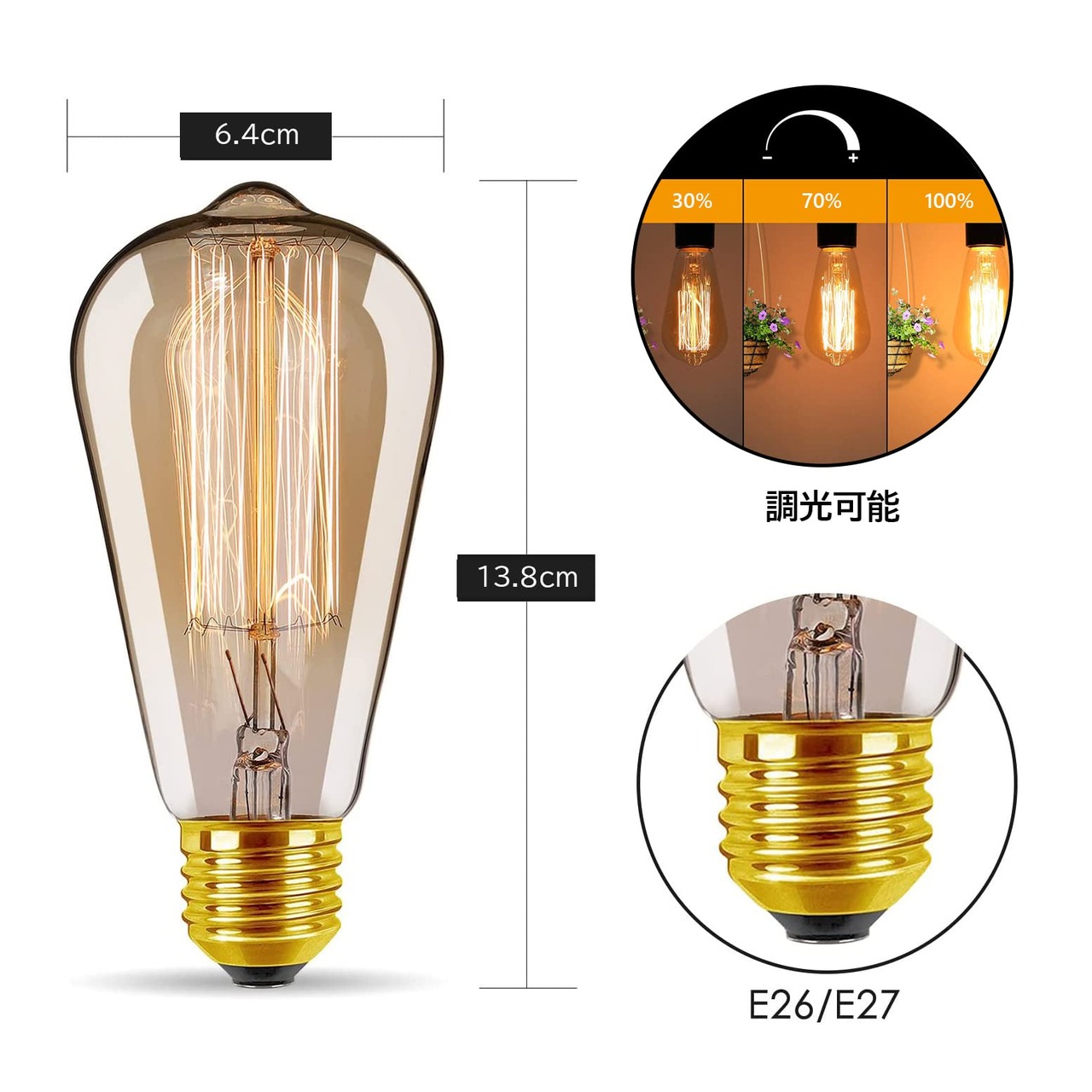 【調光可能】このタングステンフィラメントエジソン電球は、標準のE26口金で、40W 110Vの調光ガラスです。(光モードは調整可能ですが、ライトの機能によって異なります。調光スイッチは含まれていません。)