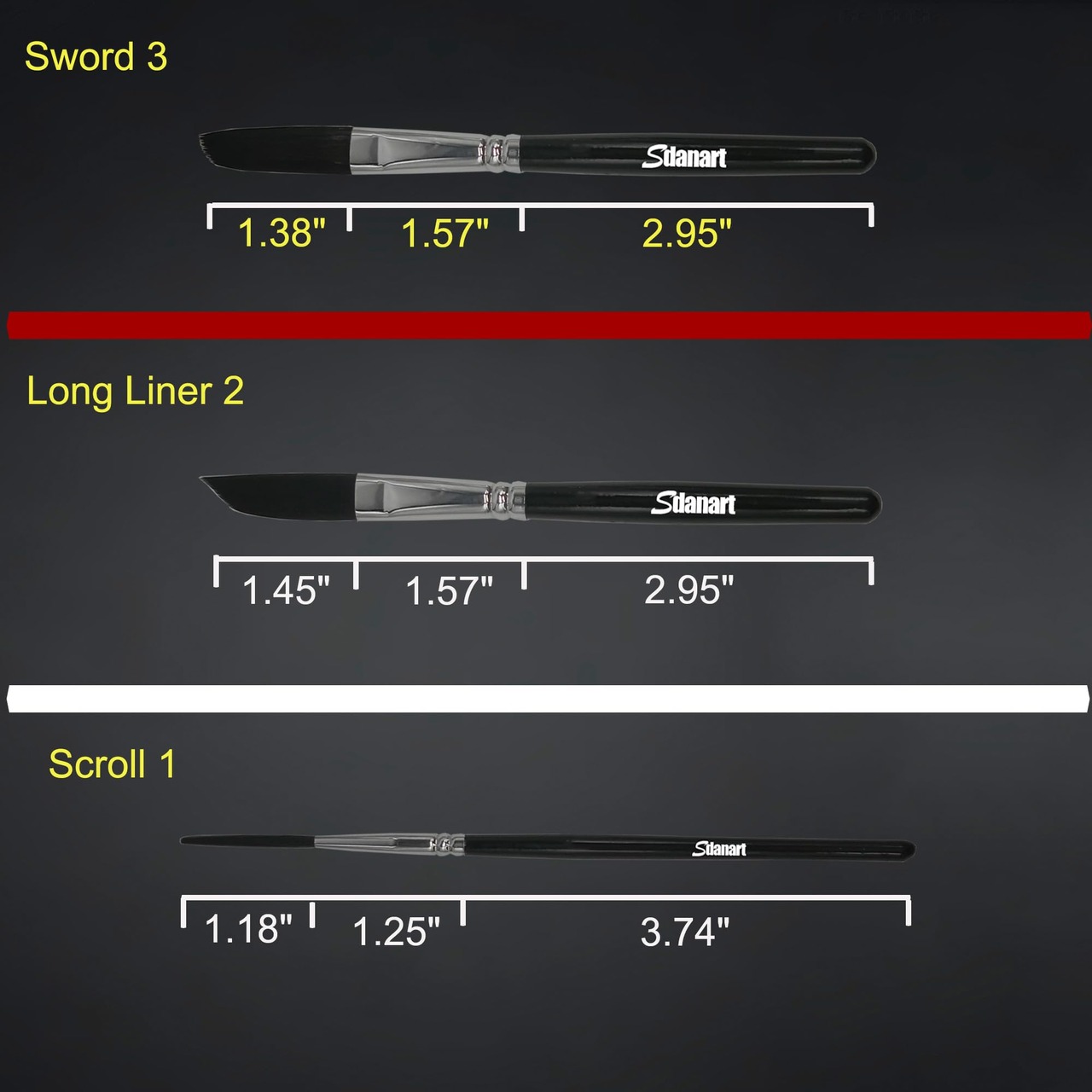 Sdanart ピンストライプブラシ 3本 高性能ストライプブラシ ロングライナーブラシ スクリプトライナーブラシ ソードブラシ スクロールブラシ プロフェッショナルアートペイントブラシ