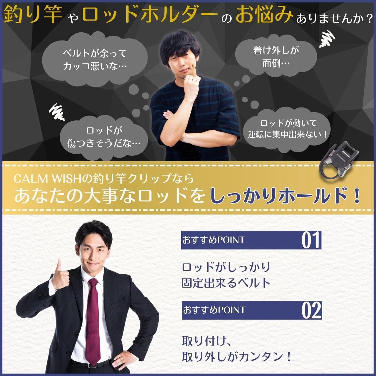 calm wish ロッド 釣竿 ホルダー クリップ キーパー キャリー バンド 車内 天井 竿掛け 車載 収納 自転車 ライト ホールド 固定 1個 セット
