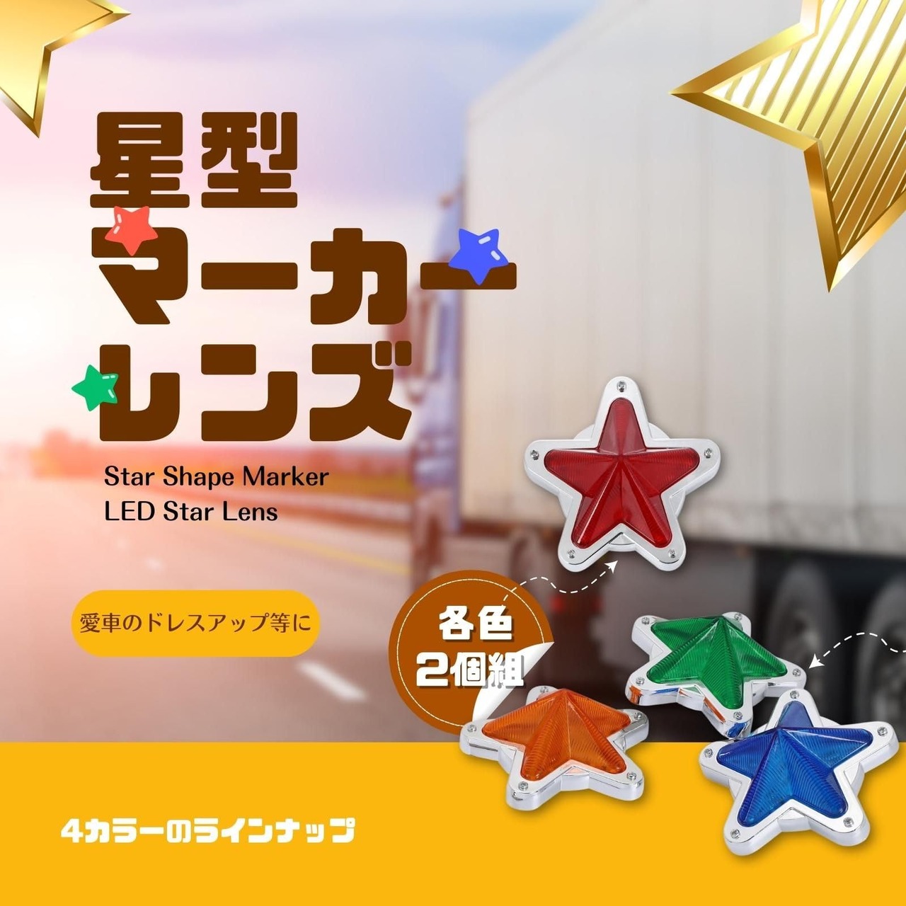calm wish トラック マーカー ランプ グリル 24v led ステー ダンプ サイド 12v 星 型 形 スター ライト ブルー 2個 汎用