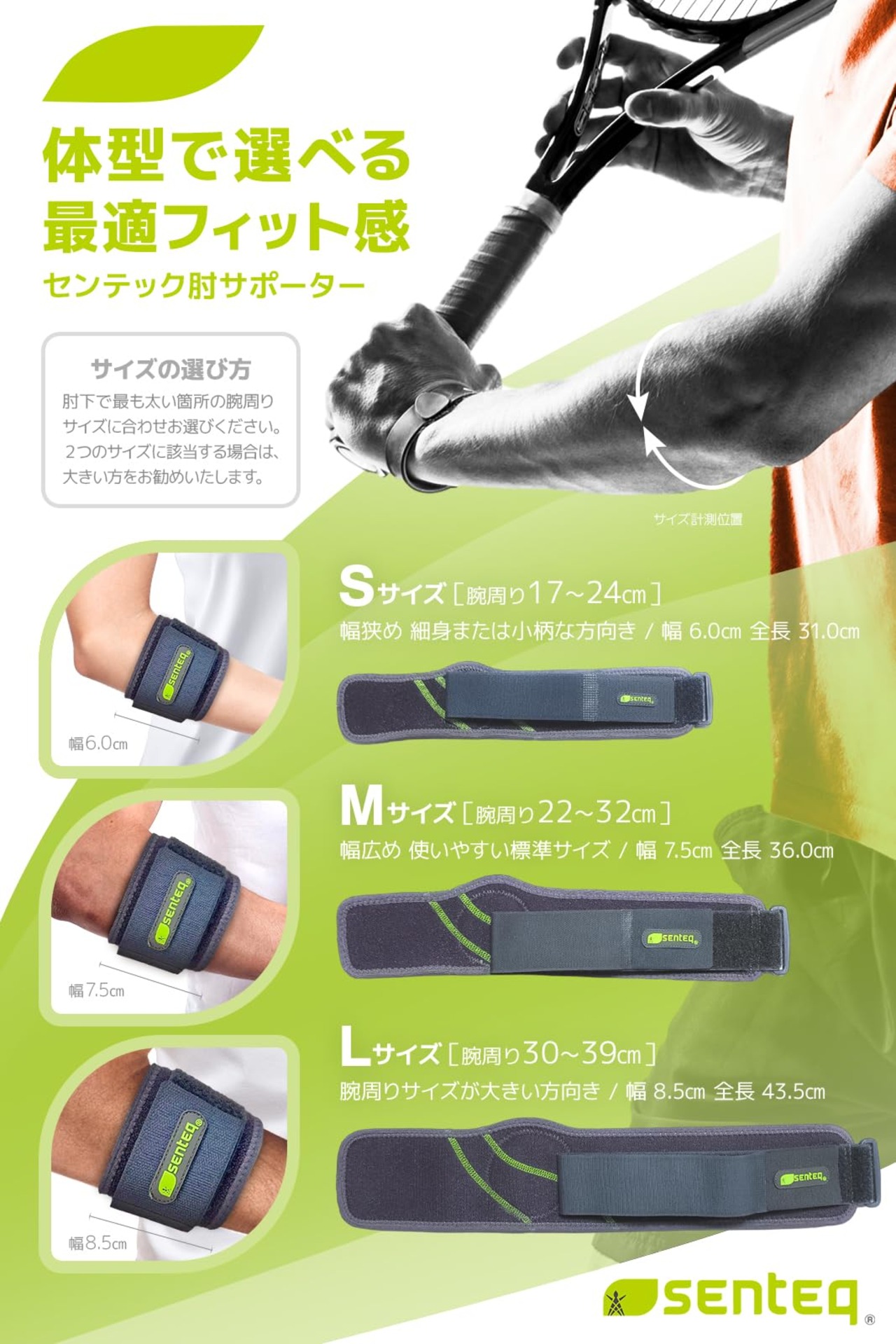 センテック 肘 サポーター【理学療法士監修】テニス エルボーバンド 幅広ストラップ 低刺激 ネオプレン素材 (1, S)