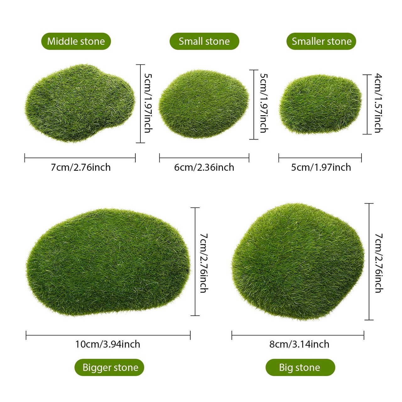 TUUWAI 人工モスロック 20個 装飾人工グリーンモスカバーストーン (5サイズ)