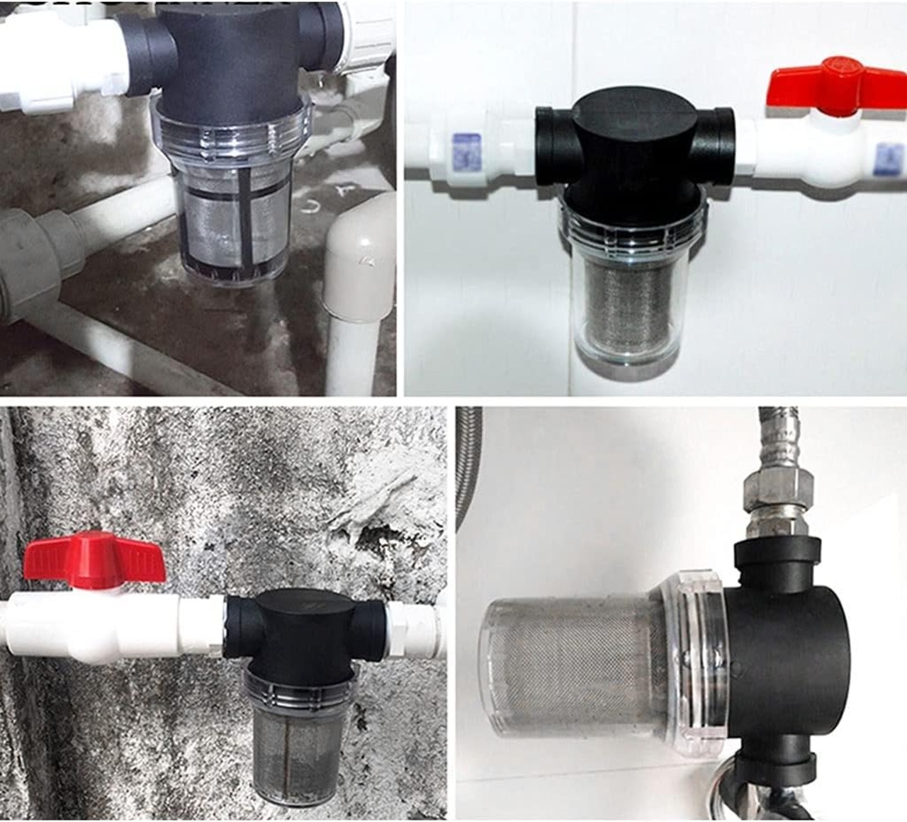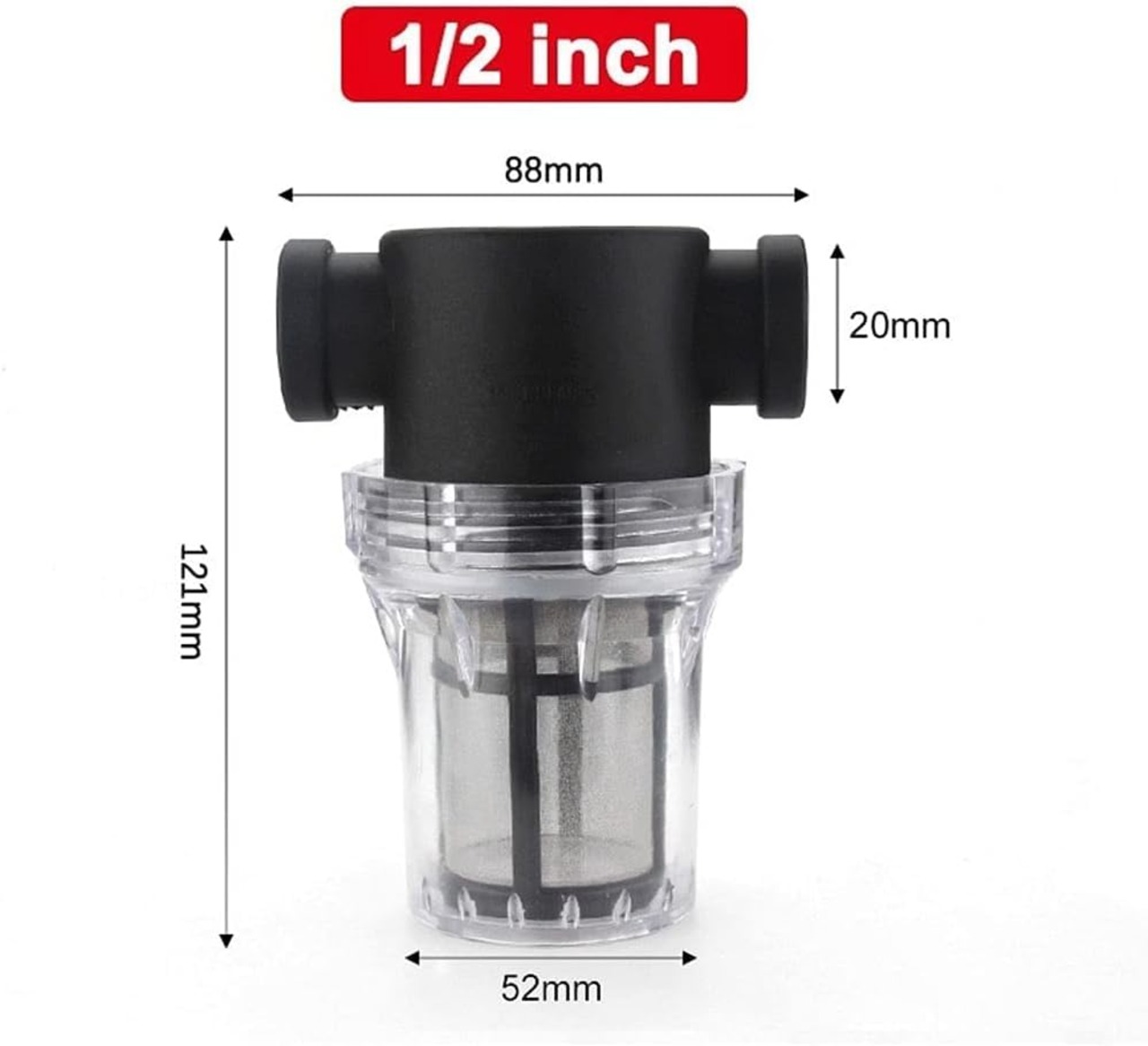 庭の水コネクタ<br/>接続サイズ: 1/2 インチ、3/4 インチ、1 インチ<br/>使用圧力 ≤ 1Mpa<br/>適正水温:0~98℃<br/>メッシュ:40メッシュ、80メッシュ<br/>材質: プラスチック + 304 ステンレス鋼メッシュ<br/>適用範囲:水道管、農場、農園、庭園、清掃車両、機械設備、水産養殖、水槽など。