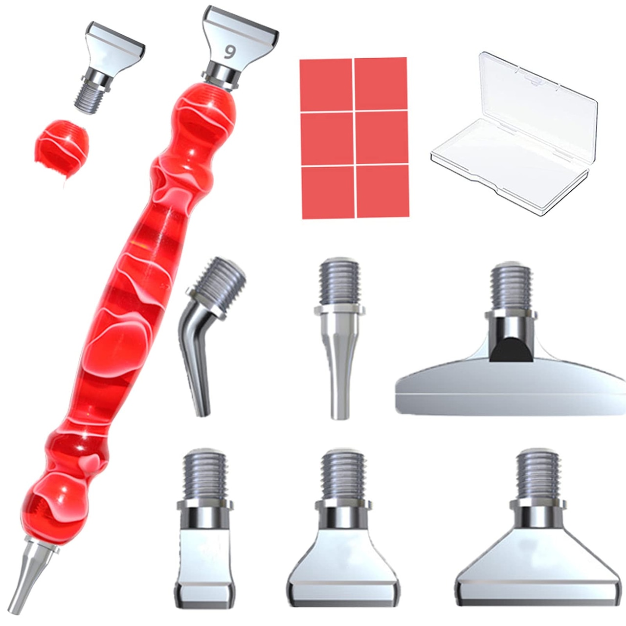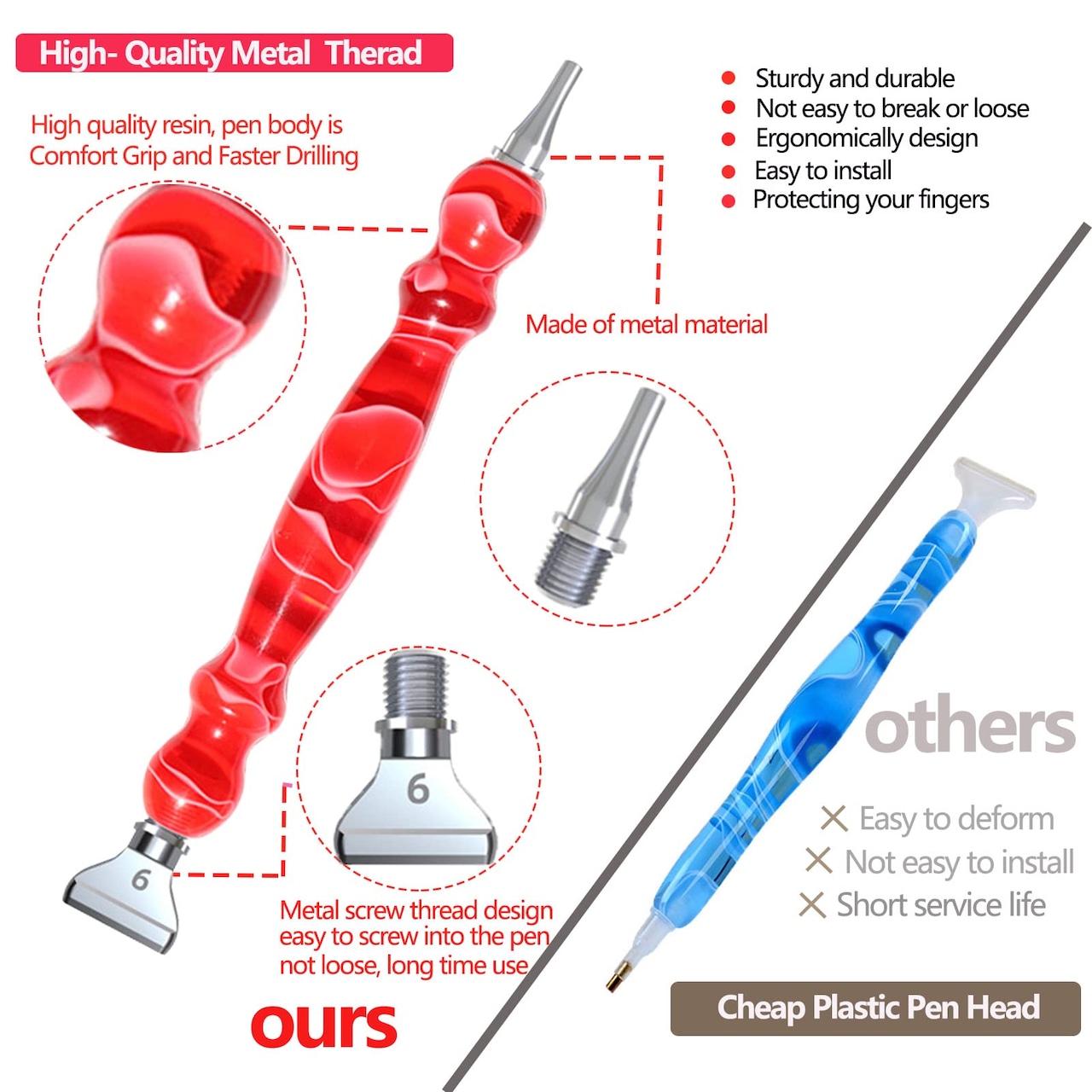 メタルねじ先端 ダイヤモンドペインティングアートペン アクセサリーとツールキット ダイヤモンド樹脂ペン ペイントワックス6本 メタルステンレススチールチップ6本 DIYクラフト用品 コンフォートグリップ レッド 14個