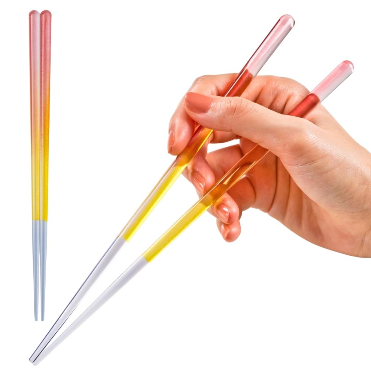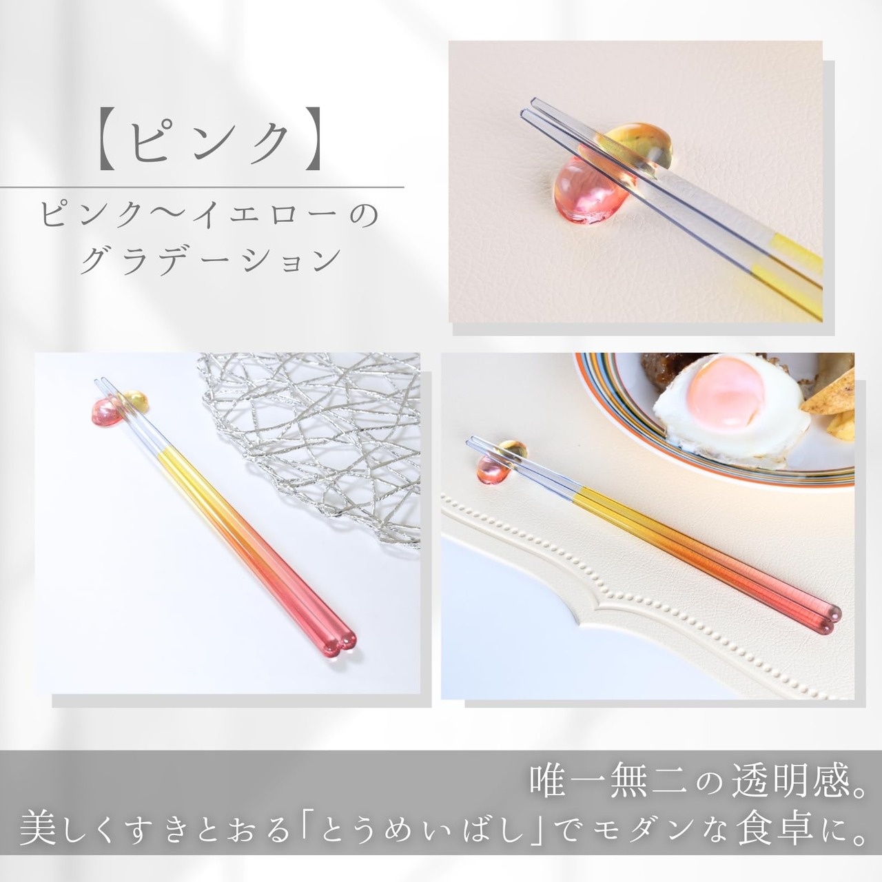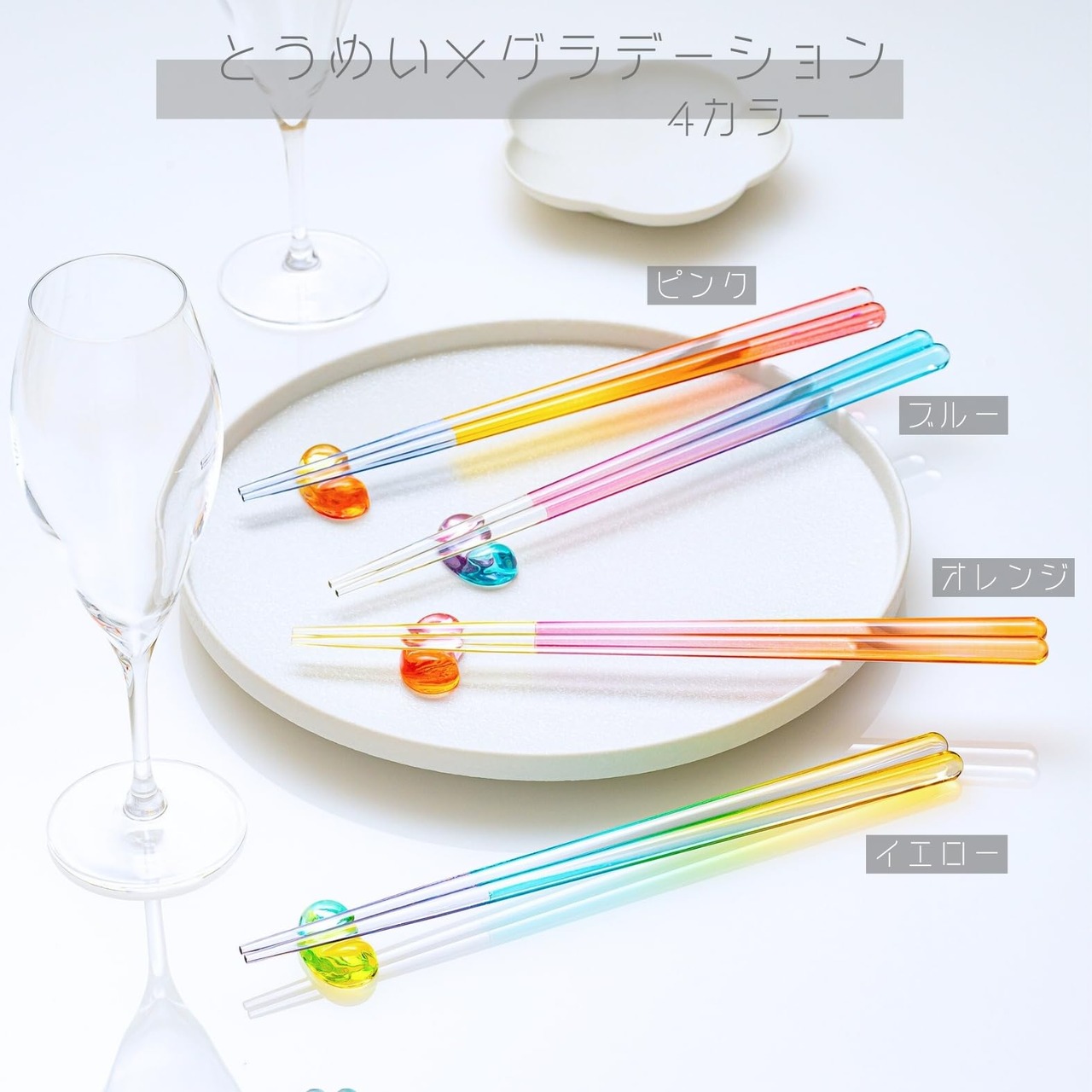 透明感のあるグラデーションが映える箸。持ち手から先端にまで透明度が高く、安っぽくない本格的なお箸に仕上がっています。