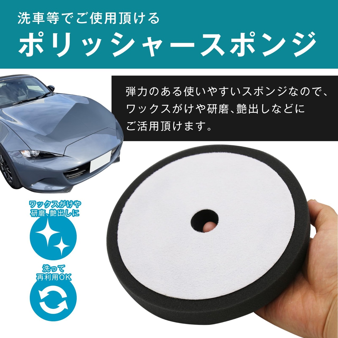 ✅洗車等でご使用頂ける、ポリッシャースポンジです。スポンジバフは柔らかく研磨力が低いことが特徴で、水垢や浅い傷などを落とす際に適しています。弾力のある使いやすいスポンジですので、ワックスがけや研磨、艶出しにご活用頂けます。