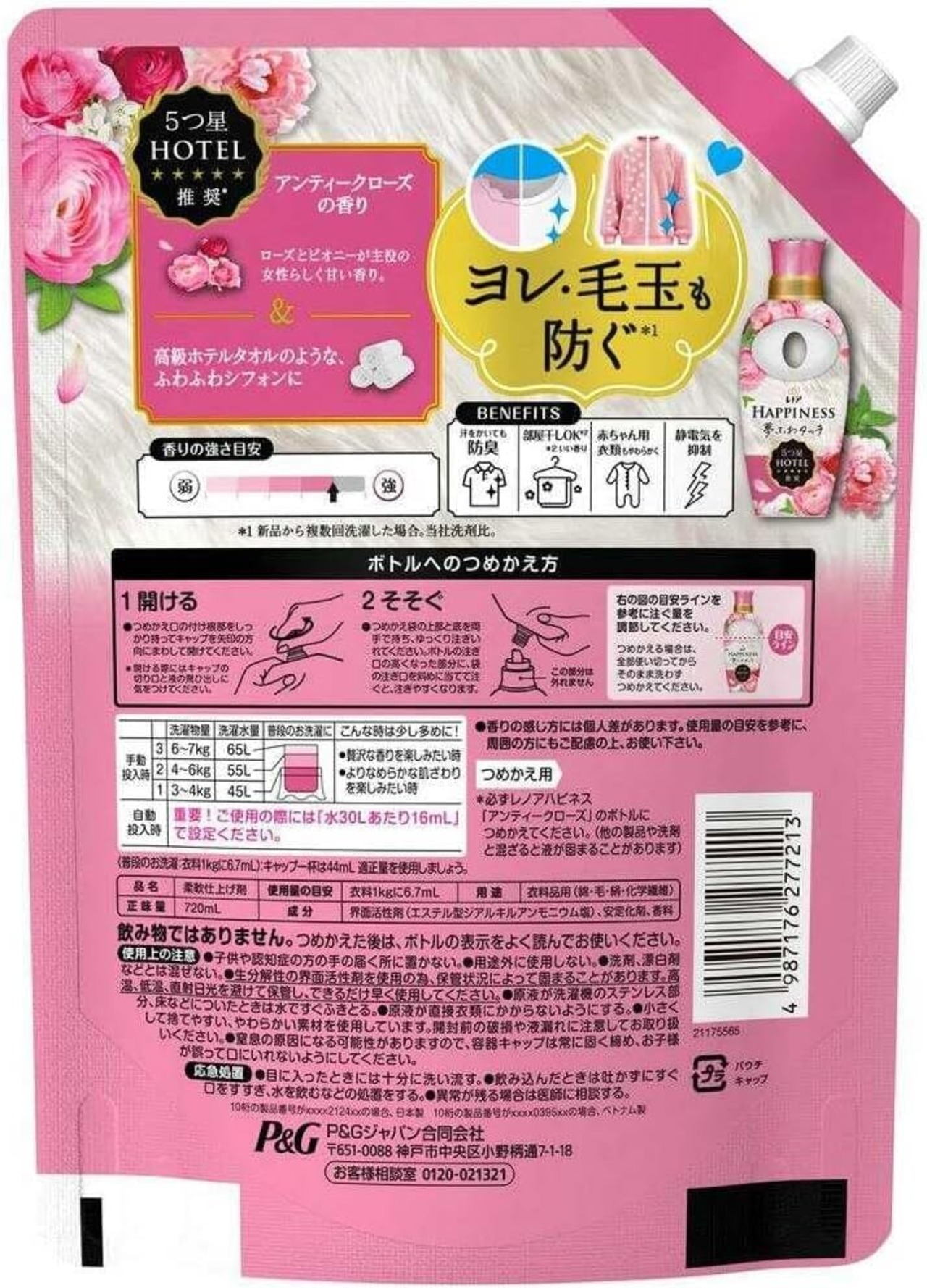 レノアハピネス 夢ふわタッチ アンティークローズ 詰め替え 2.3ヶ月分 720ml 6袋セット 柔軟剤