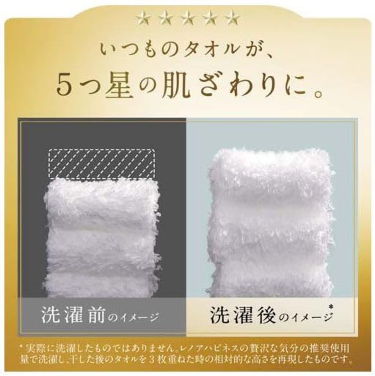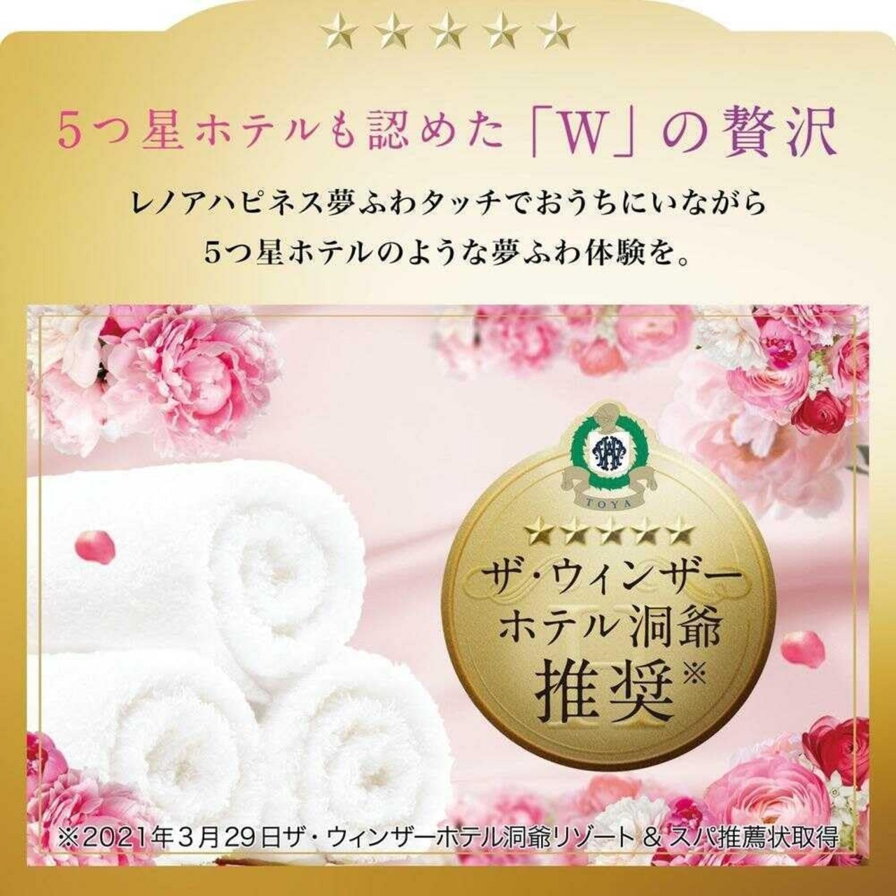 新レノアハピネス夢ふわタッチは、5つ星ホテルも認めた香りも肌ざわり。レノアハピネス夢ふわタッチで、おうちにいながら5つ星ホテルの贅沢を体験してください。 秋冬は乾燥しやすいから、ニットのゴワゴワ・チクチクが気になりがち…新レノアハピネス夢ふわタッチなら、衣類をシルクの様になめらかに洗い上げるから、ニットももうチクチクしない*! (*コットンニットで検証) 最高量*1の柔軟成分を配合しているから、5つ星ホテルタオルのような肌ざわりを83%が実感*2しています。(*1 過去10年レノアハピネスにおいて、*2 「華やかに香るアンティークローズの香り」使用。P&G消費者調査[n=108]による) 1週間長続きする*贅沢な香り。レノアハピネス夢ふわタッチなら5つ星ホテルも認める贅沢な香りが1週間楽しめます。(*保管状態にて) 華やかに香るアンティークローズ。ローズとピオニーが主役の女性らしく甘い香りで、しあわせな気分にみたされます。 レノアの柔軟剤は、ドラム式洗濯機や自動投入洗濯機でもお使いいただけます! 詳細の使用方法や使用量は、製品裏の説明をご覧ください。
