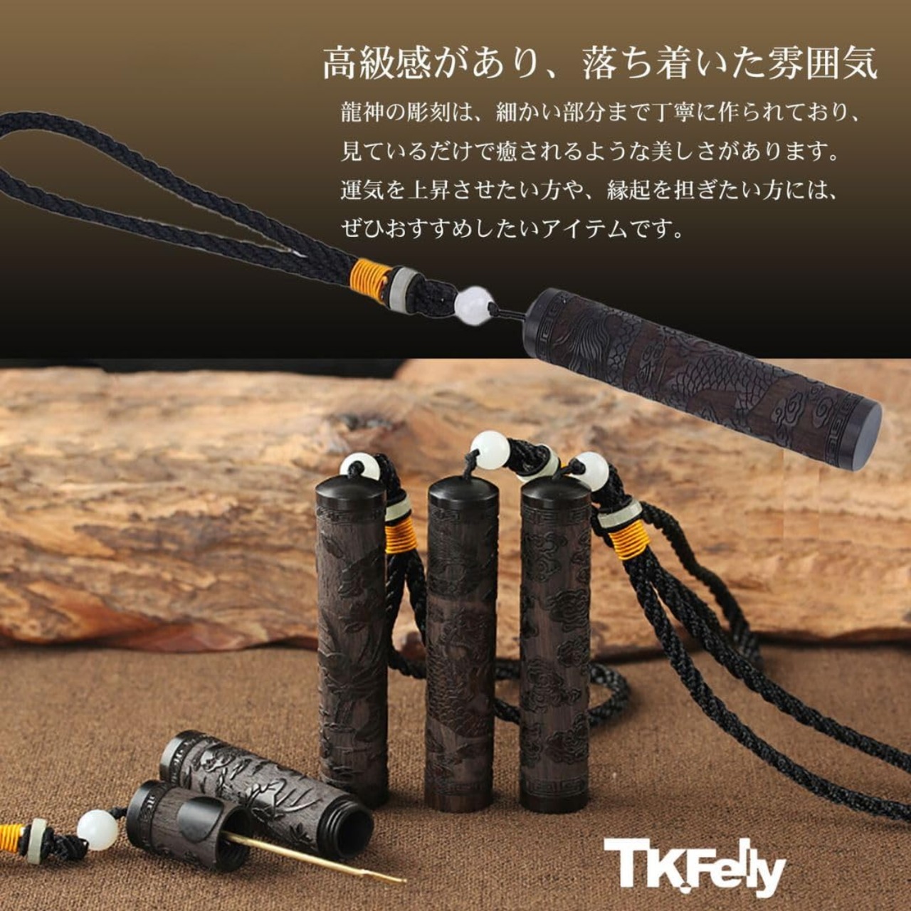 【デザイン】黒檀調の木製ケースには、龍神の彫刻が施されています。龍神は雲をかけ巡る姿で、「運気上昇」の象徴とされています。縁起の良いエネルギーを感じたい方にぴったりのアイテムです。 また、黒檀の木は高級感があり、落ち着いた雰囲気を醸し出しています。龍神の彫刻は、細かい部分まで丁寧に作られており、見ているだけで癒されるような美しさがあります。運気を上昇させたい方や、縁起を担ぎたい方には、ぜひおすすめしたいアイテムです。また、プレゼントにも最適です。特別な方への贈り物として、喜ばれること間違いなしです。