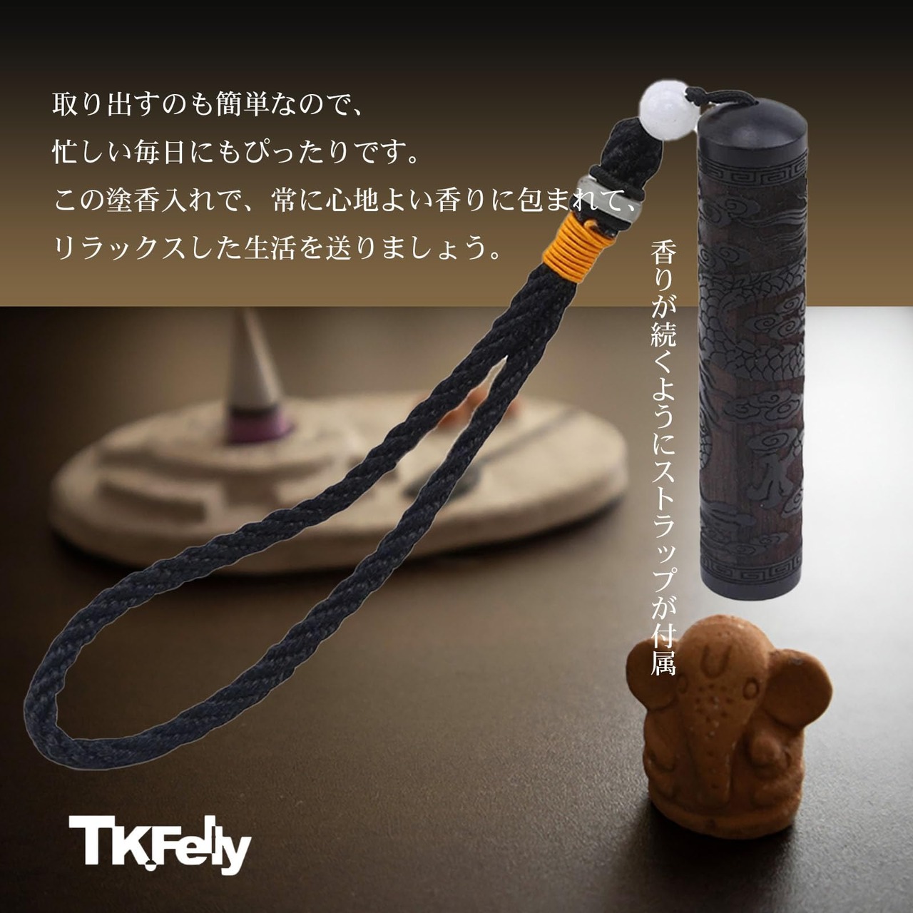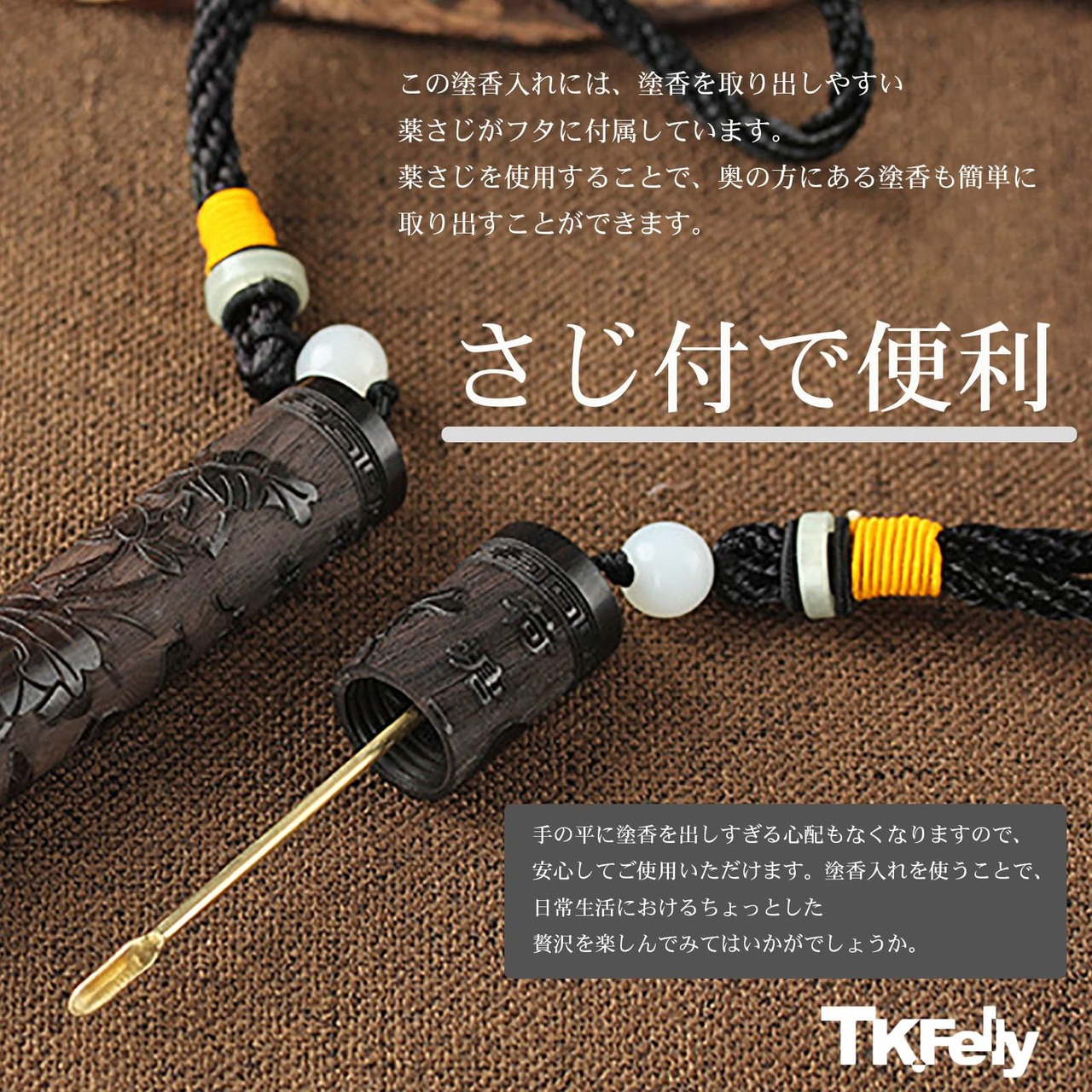 TK.Felly 塗香入れ 携帯 龍 塗香 ずこう ケース 携帯用 お香入れ お香 木製 黒檀 薬さじ スプーン付