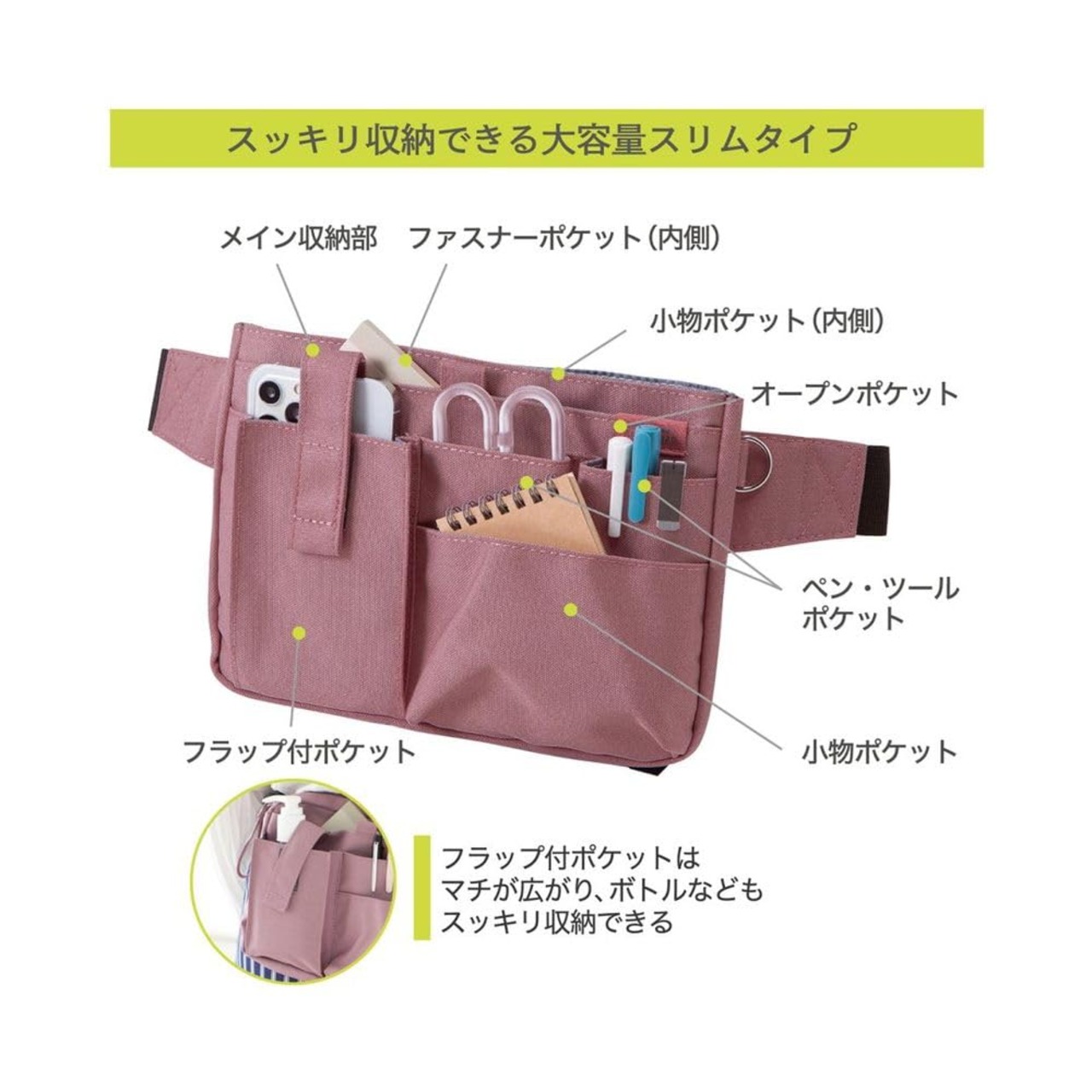 働く人のための文具エプロンバッグ○フタがないから出し入れ簡単で作業に最適!