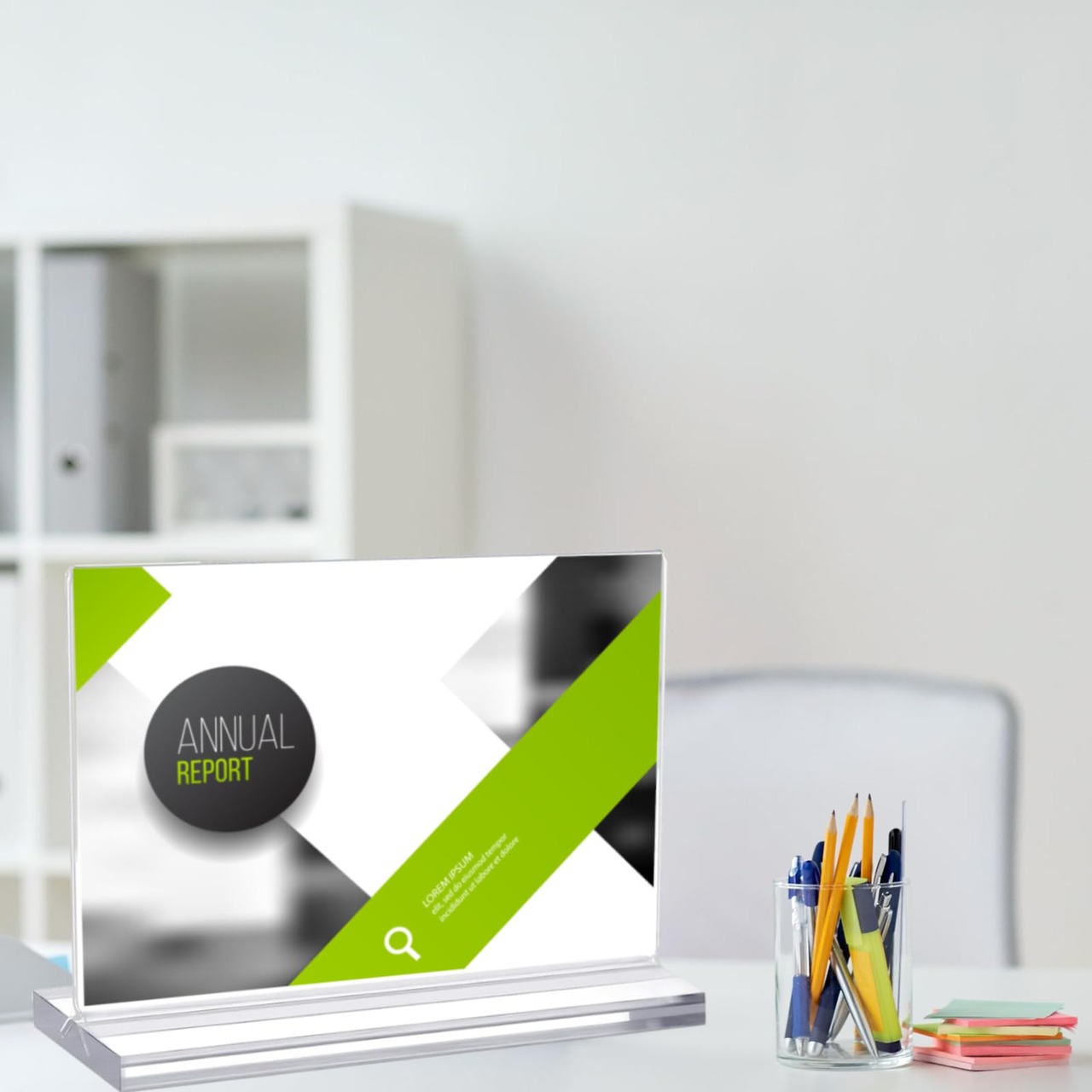 安定感とフィット感 : ベースに三角形のアクリルサインが立っているので、安定性が向上します。 内側のページを配置するのに適した幅で、書類やリーフレットを効果的に取り付けることができ、落下しにくく、ほこりを避けることができます。
