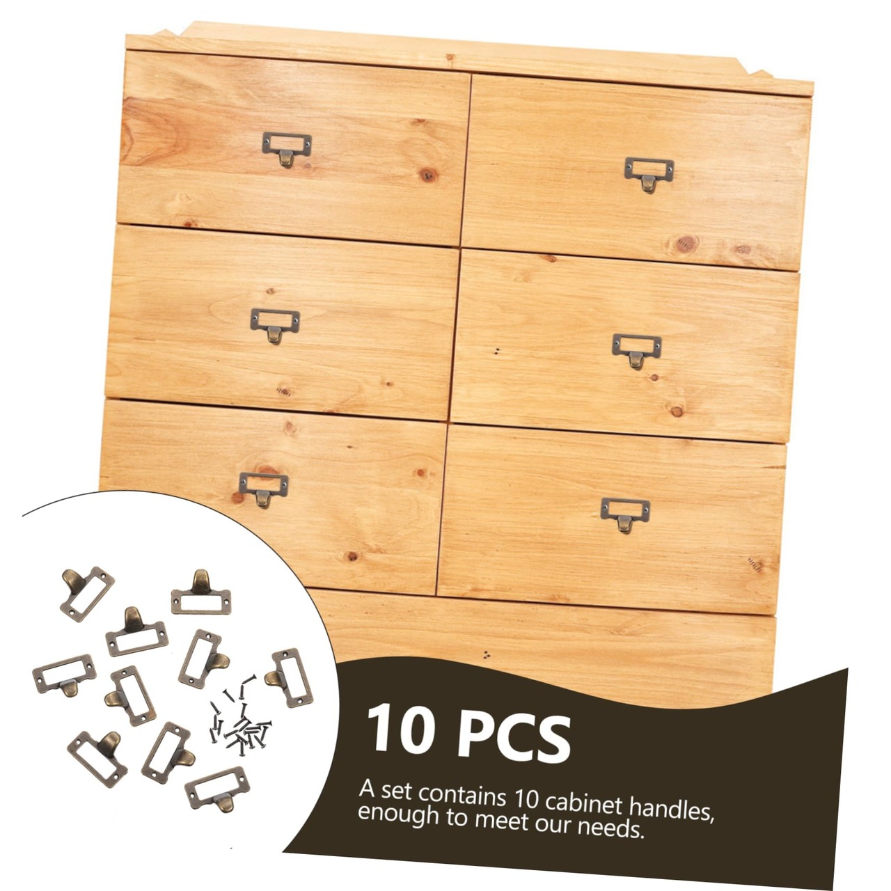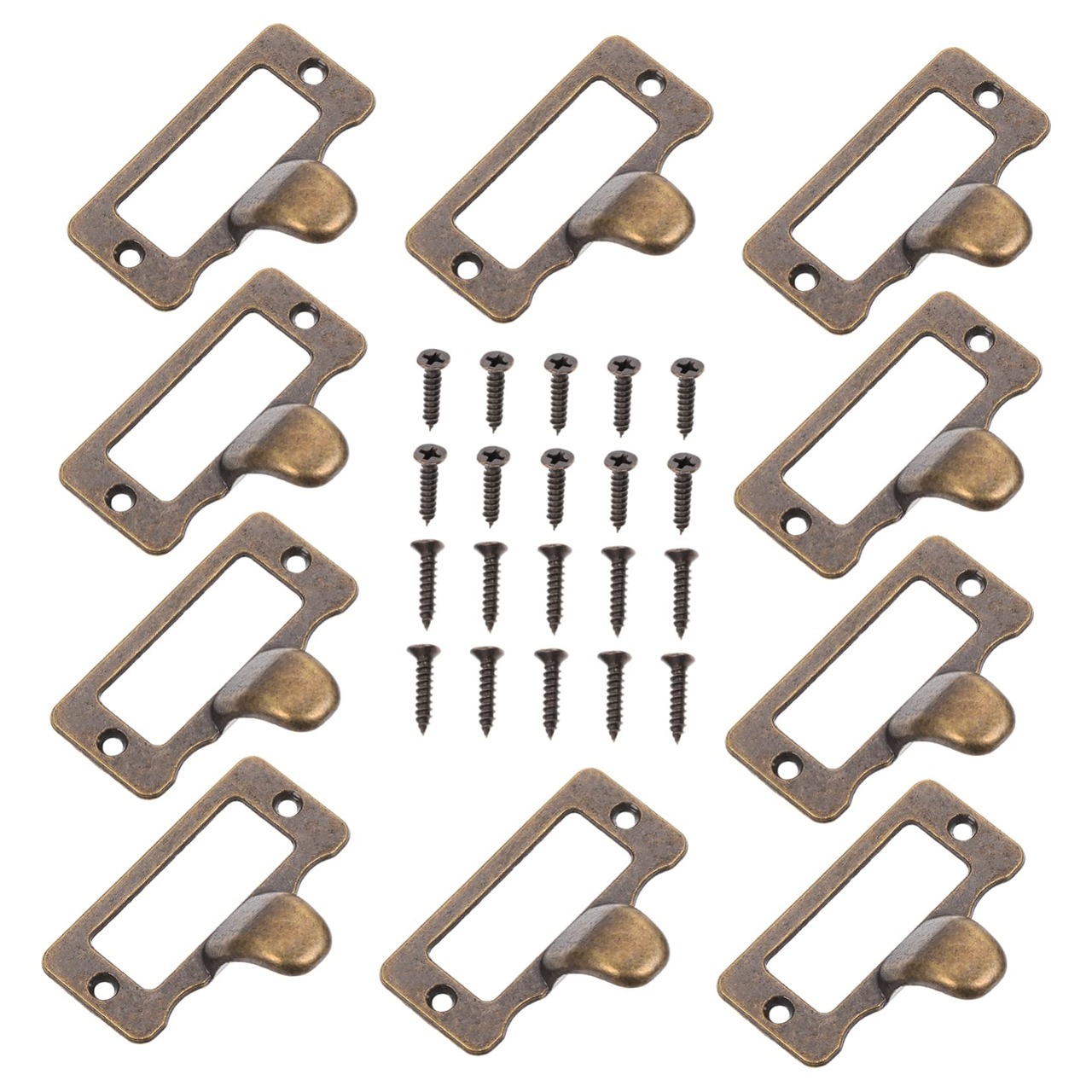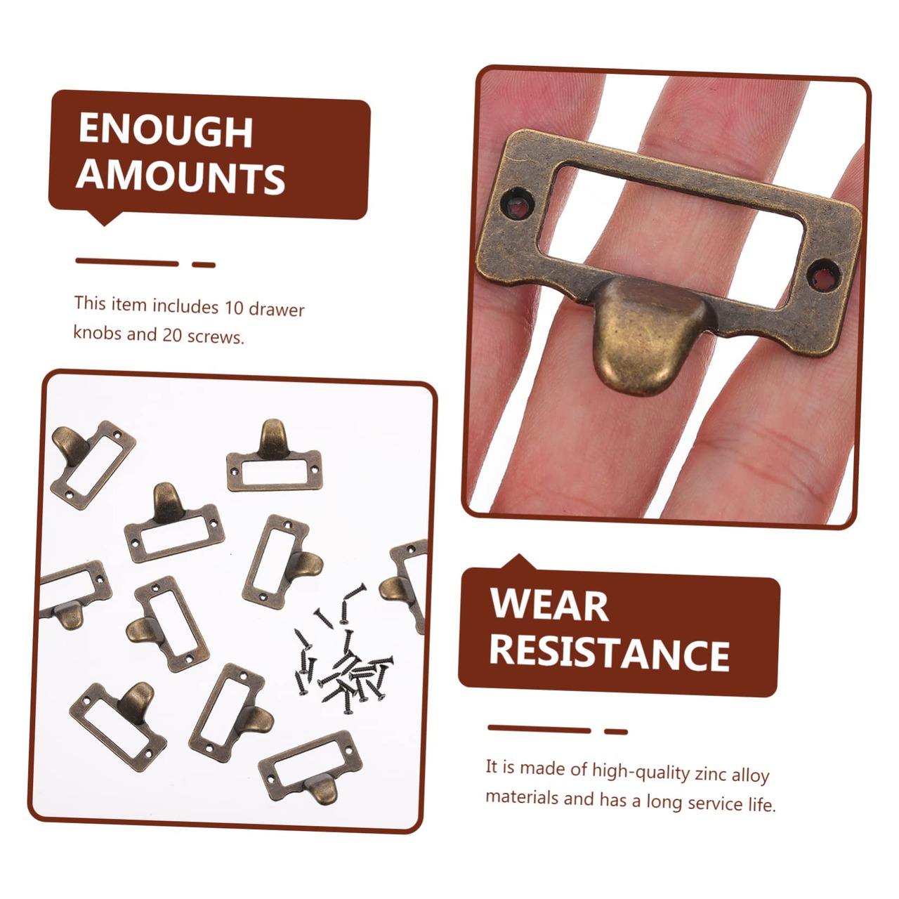 SOESFOUFU アンティーク合金製プルハンドル 10個セット ラベルホルダー 付き 引き出し用ハンドル キャビネットやドレッサー用と良い職人技 簡単取り付け