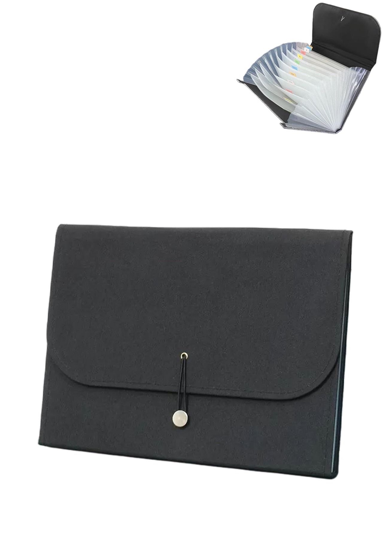 ドキュメントファイル A4 書類ケース 持ち運び 蛇腹 ファイルケース 書類 収納ケース 13ポケット ハードカバー おしゃれ (ブラック)