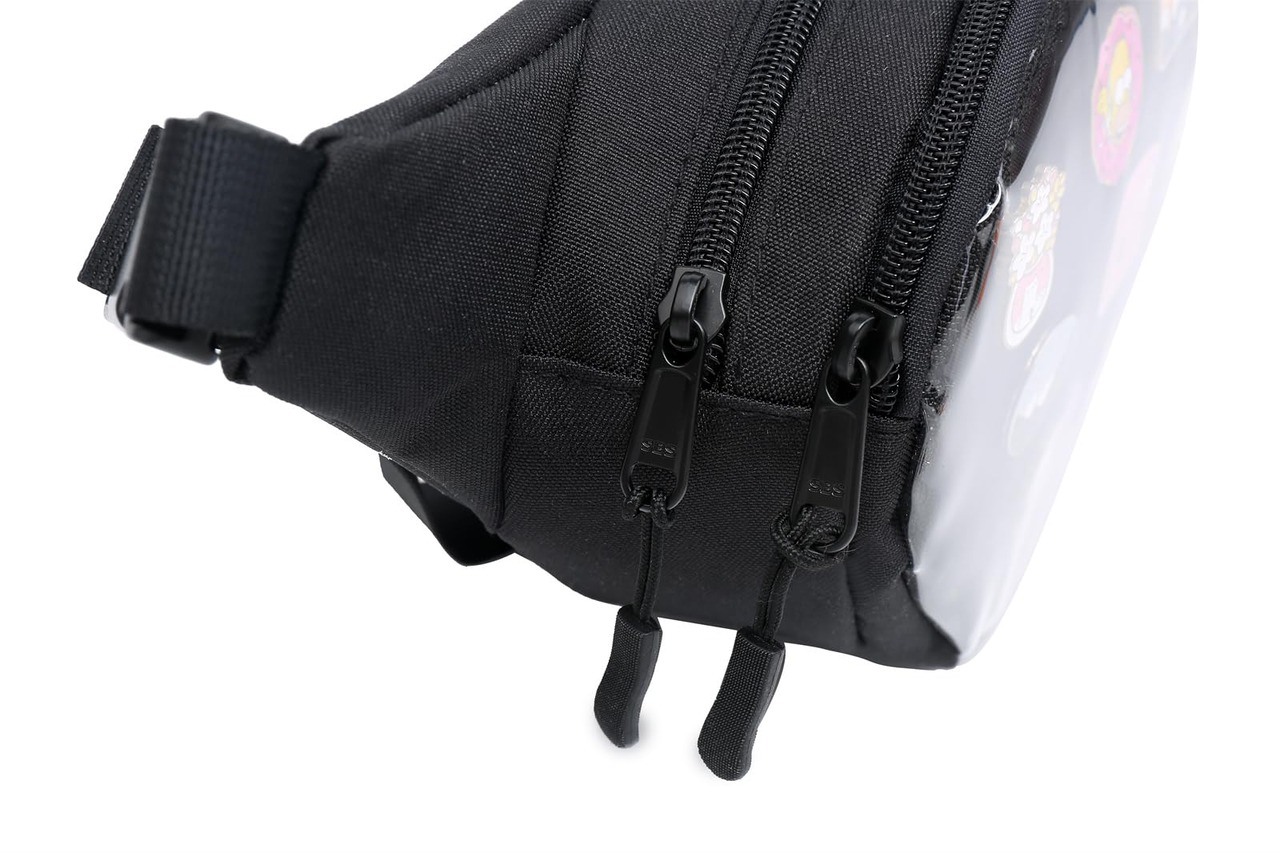 このピンバッグはメインの大きなポケットと内ポケットがあります。 外側にファスナー付きポケットとクリアポケット。 itaバッグインサート付き。