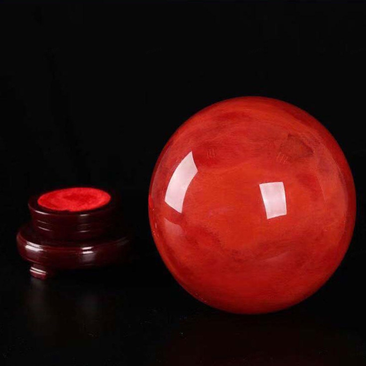 レッドクリスタル瞑想球ボール 木製ディスプレイスタンド付き ナチュラルデコレーションジェムストーンスフィア チャクラヒーリングクリスタルスフィアボール,80mm