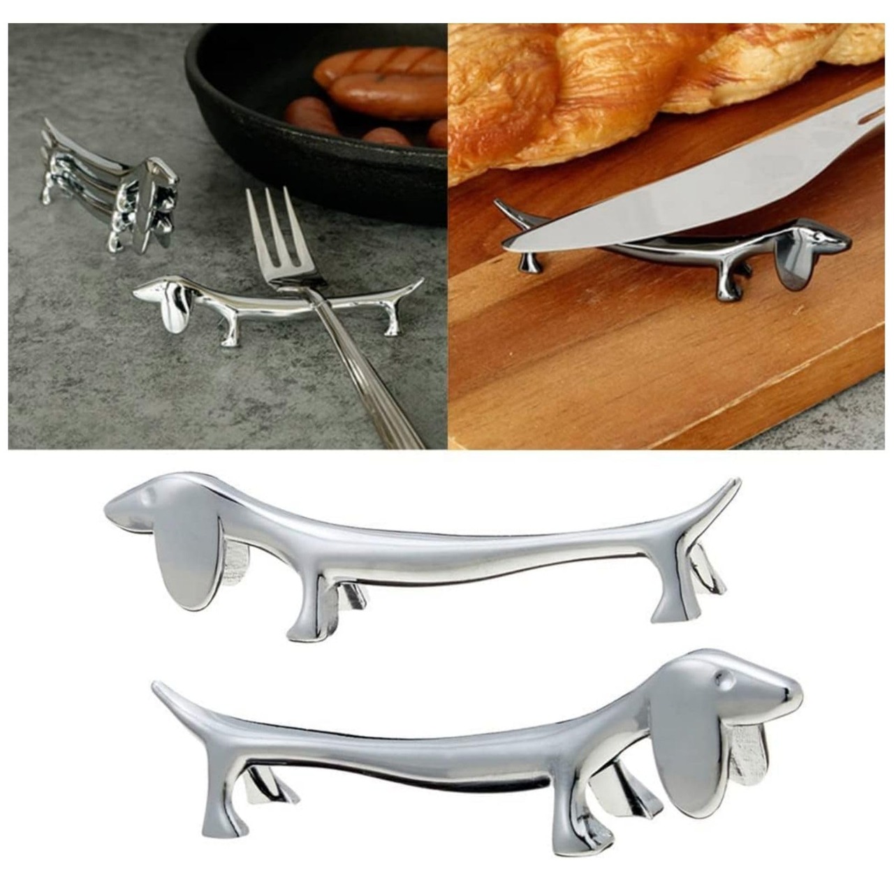PLEAVIT 箸置き カトラリーレスト ナイフレスト 北欧 シルバー 金属 モダン ナイフ フォーク 猫 犬 セット