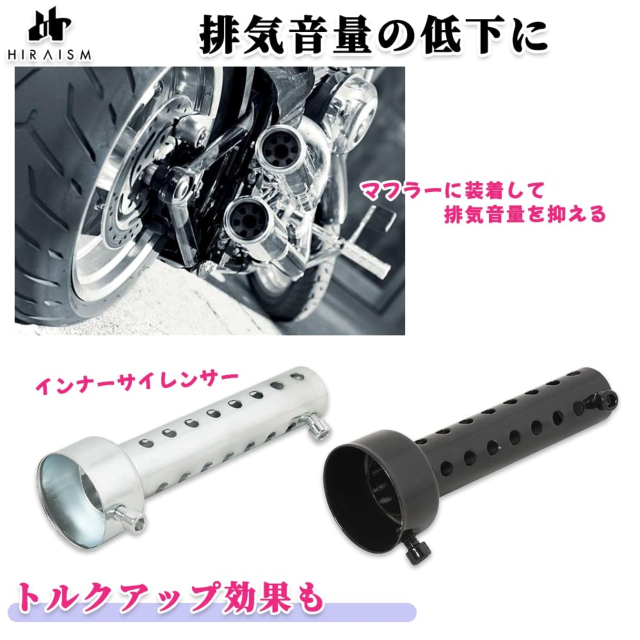 HIRAISM バイク インナーサイレンサー インナーバッフル マフラー 消音 汎用 2本 セット (ブラック 60mm)