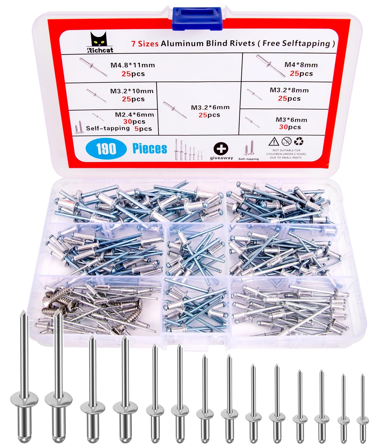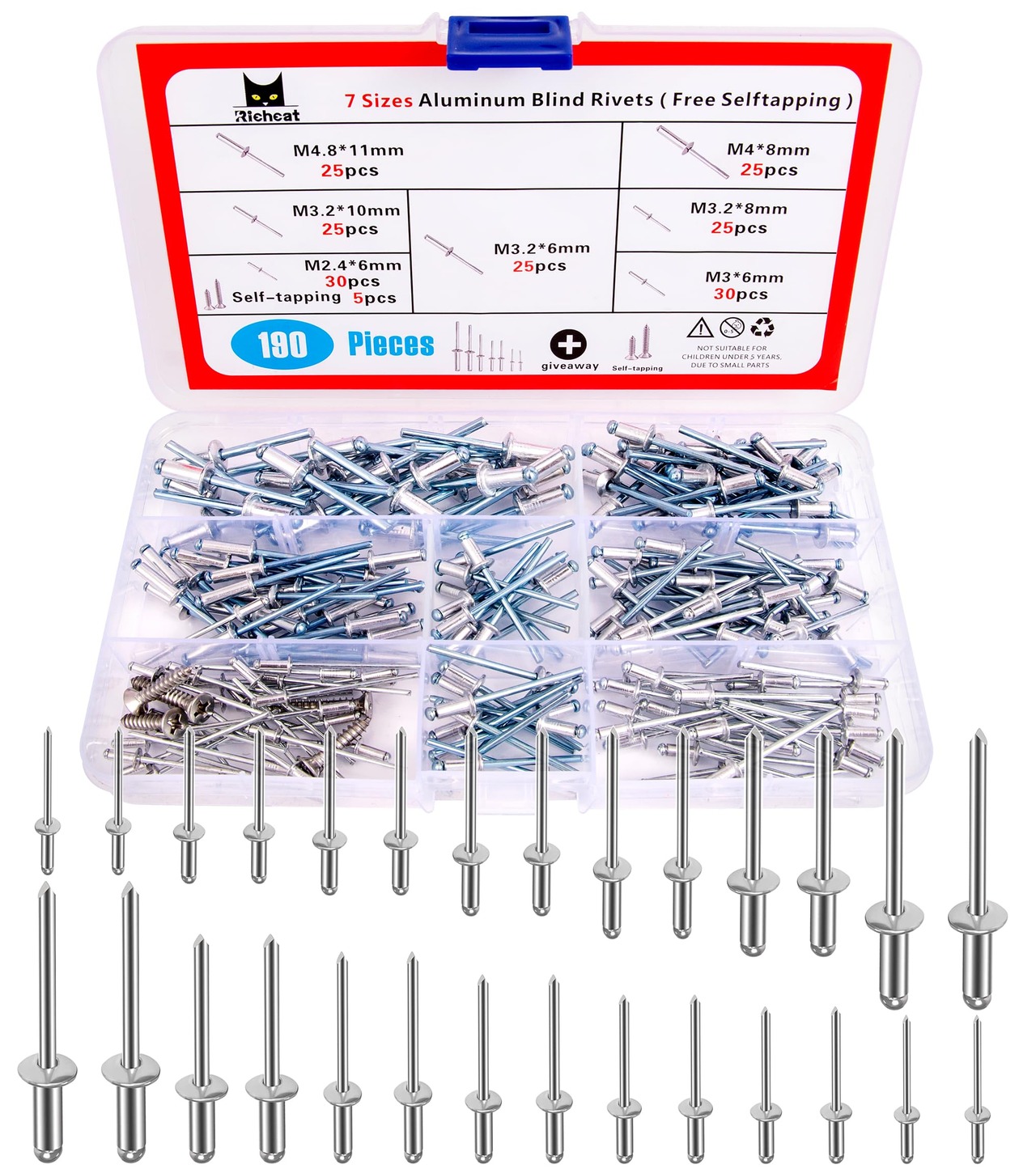 Richcat ブラインドリベット アルミニウム 耐圧 耐食 M2.4 M3.0 M3.2 M4 M4.8 ブラインドリベット/リベットファスナーキット