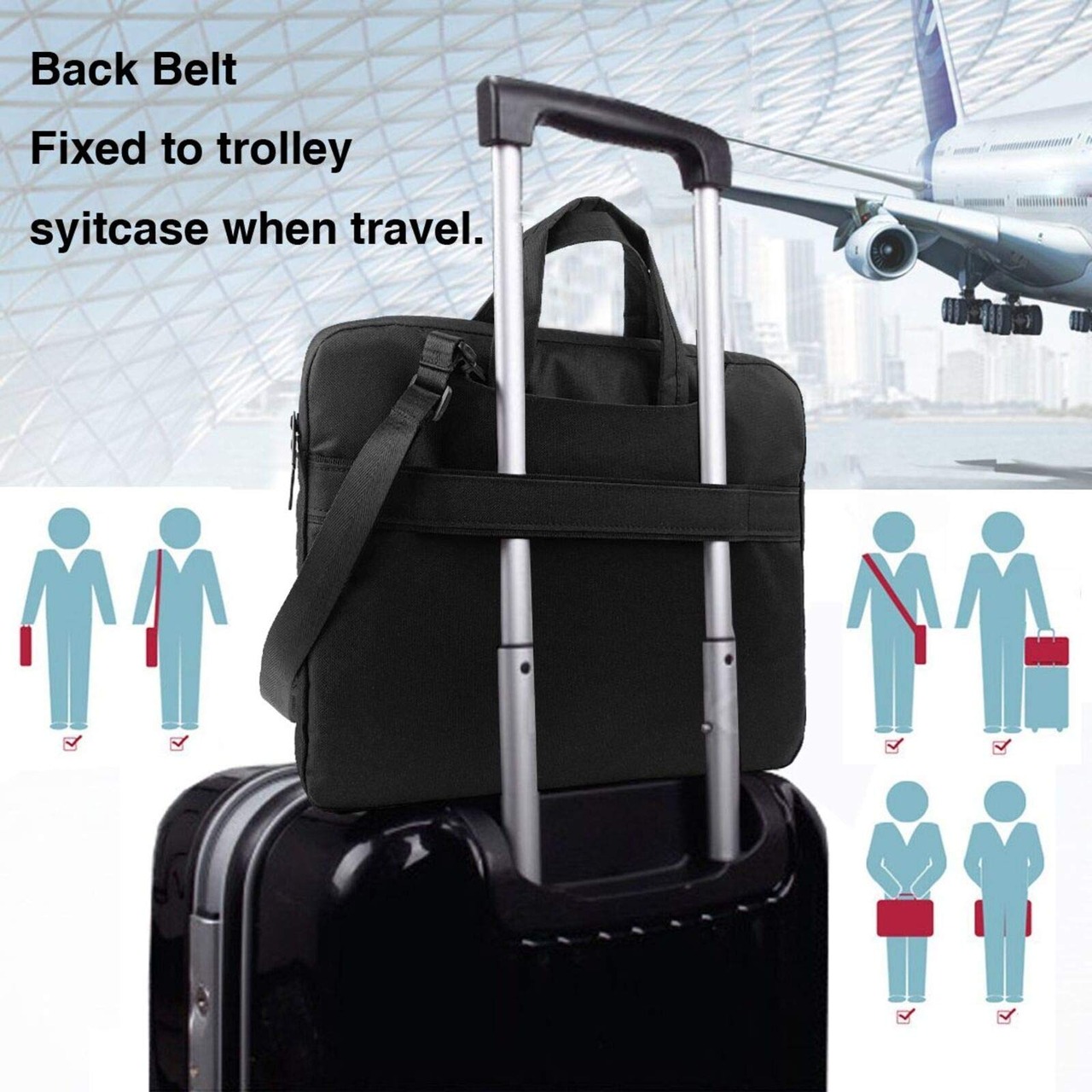 【3wayで使い方色々】このノートパソコンケースは手提げバッグだけでなく、ショルダーバンド付きなので、肩掛けすることもできます。いつでも手提げやショルダー、簡単に変換できます。背面に固定用の帯を付き、キャリーケースにも取り付け可能なので、旅行や出張にも便利です。