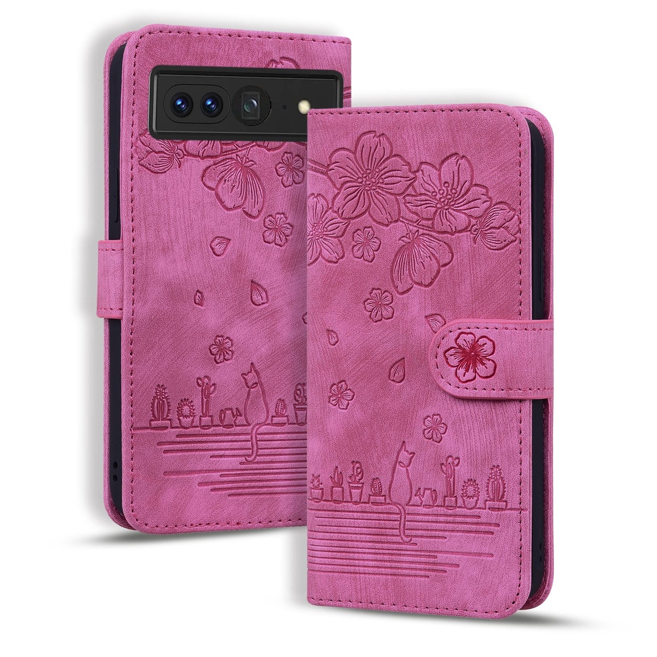 Google Pixel 7 Pro対応 携帯電話フリップケース エンボス携帯電話ケース レザーケース カードスロット付き携帯電話ケース キャリーリストストラップ スマートフォンケース Google Pi対応