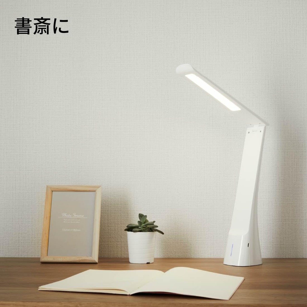 オーム電機 デスクライト LED コードレス 充電式 調光 調色 ホワイト 学習スタンド 折りたたみ式 コンパクト 省スペース DS-LD24BG-W 06-3683 OHM