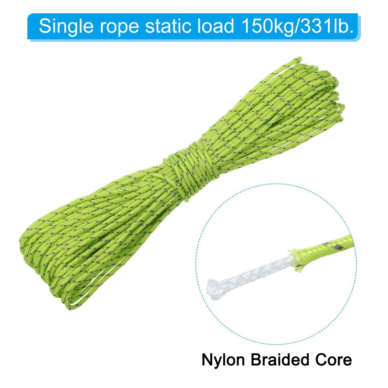 PATIKIL 65フィート 反射ガイラインキャンプ用パラコード 2本セット2mmテントコードガイラインロープ キャンプテントタープハイキング用ナイロンパラコードロープ 蛍光緑(20M)