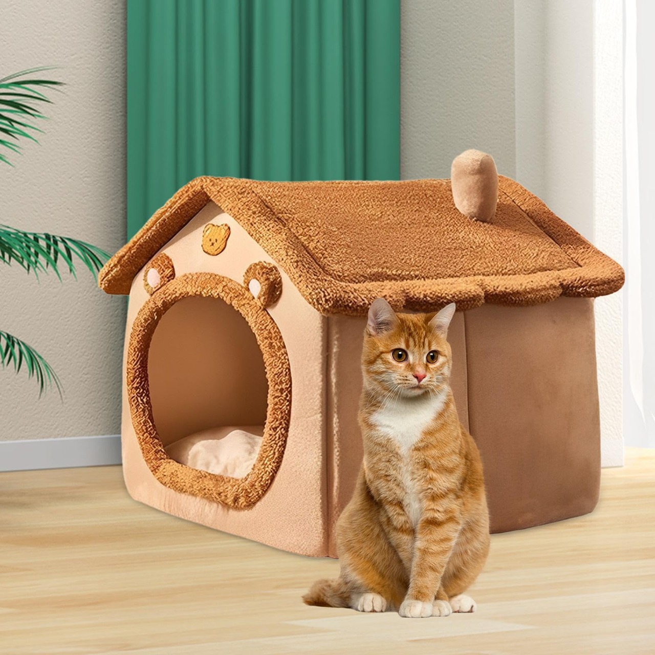 【密閉デザイン】:密閉されたペット犬猫ハウスはプライバシーを確保しながら、猫に快適な睡眠環境を提供します。