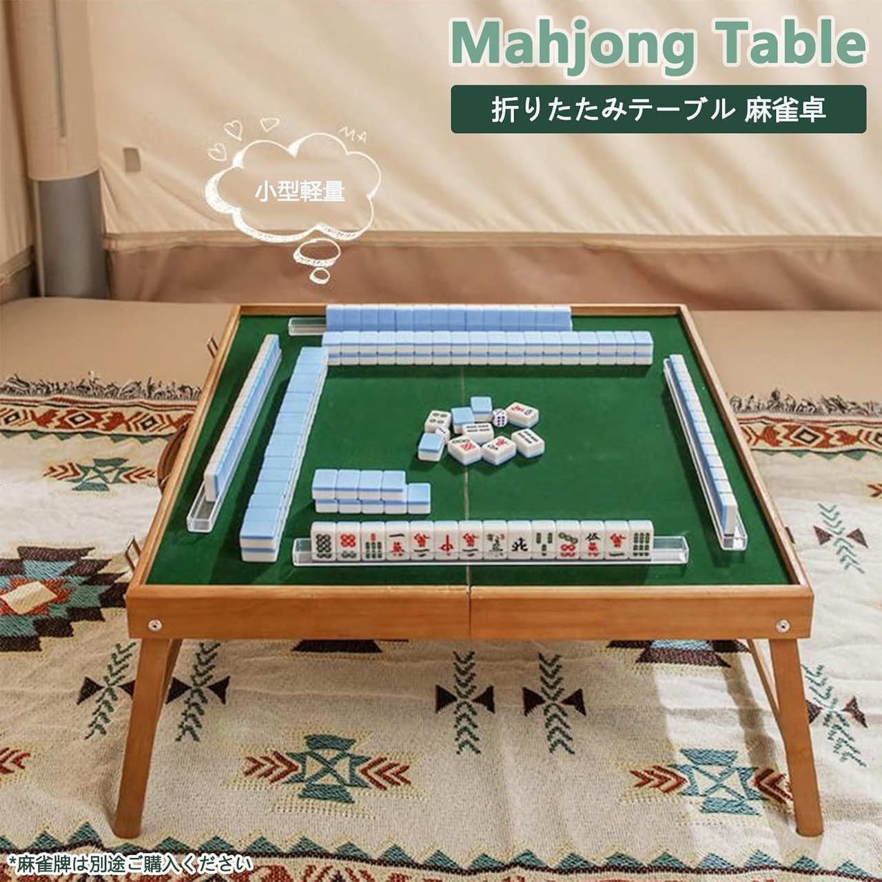 MGC 折りたたみ式 麻雀卓 ハンドル付き 小型軽量 持ち運びに便利 家庭用 旅行用 コンパクト 麻雀台 麻雀テーブル 収納付き ローテーブル ミニテーブル レジャーテーブル ファミリーキャンプ (麻雀牌付き)