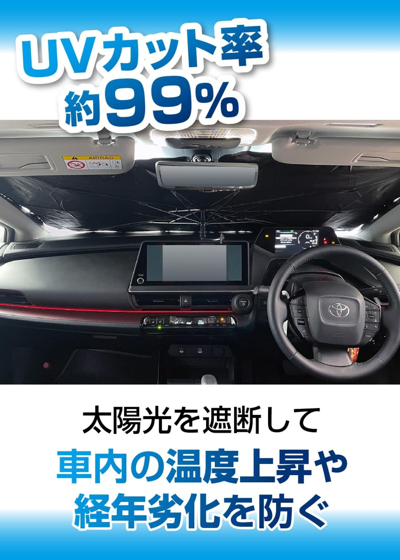 メルテック(meltec) サンシェード 傘型 車用パラソルシェード Lサイズ 断熱 遮光 遮熱 UVカット (骨組み:約135×75cm シェード生地:約144×76cm) PS-21