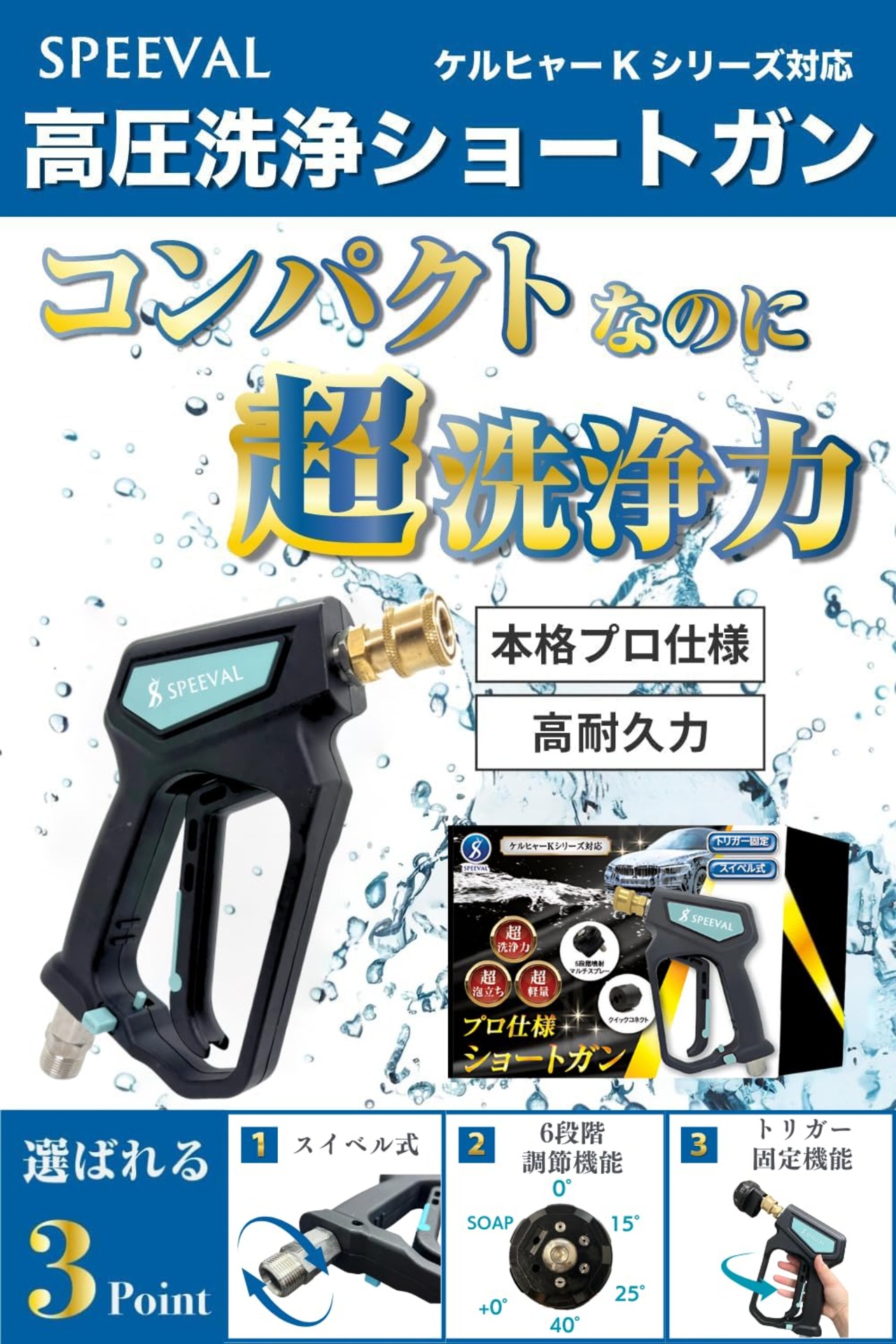 SPEEVAL ショートガン【2025年最新型】高圧洗浄ノズル スイベル付き トリガー固定 ケルヒャーKシリーズ クイックコネクトに対応 6段階マルチスプレー付属 フォームガン 真鍮製 洗車