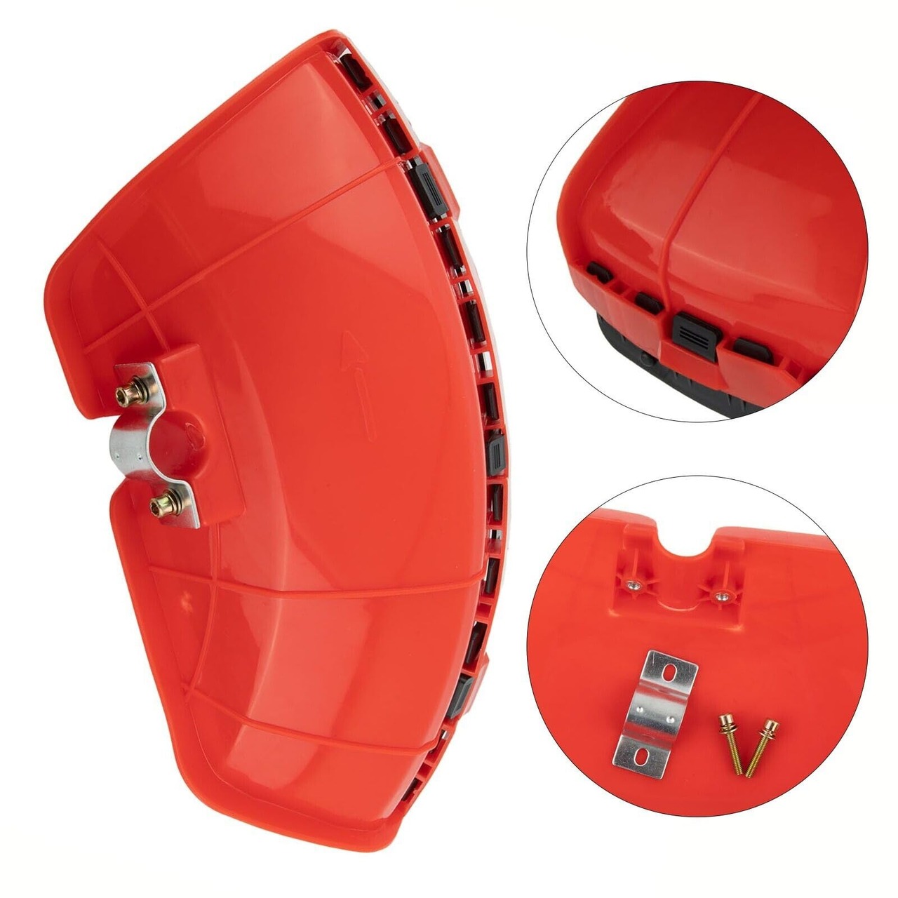 【商品詳細】:サイズ:28*17cm 。<br>【素材】:このカバーは頑丈なプラスチック素材で製造されており、割れにくく安全です。カバーは目立つ赤色で、夜間の作業でも安全にご利用いただけます。<br>【大きな防護面積】:草刈り機に取り付けて使用するプロテクターです。草刈り作業中に飛び石から身を守ります。また、草刈り中に飛び散る草や地面に落ちた金属片なども防ぎ、安全な作業が可能です。<br>【簡単セット】:たった2本のネジで固定するだけで簡単に取り付けが完了します。芝生のお手入れや広い敷地内での雑草のお手入れ中にも迅速にセットできます。ただし、草刈り機自体は危険な機器ですので、安全な人が取り付けてください。<br>【用途】:草刈り作業中に小さな石、草、泥、土、金属片などが飛び散る可能性がある場合、このカバーは身を守るために不可欠です。泥はねも防ぐので、作業着の汚れを最小限に抑えます。