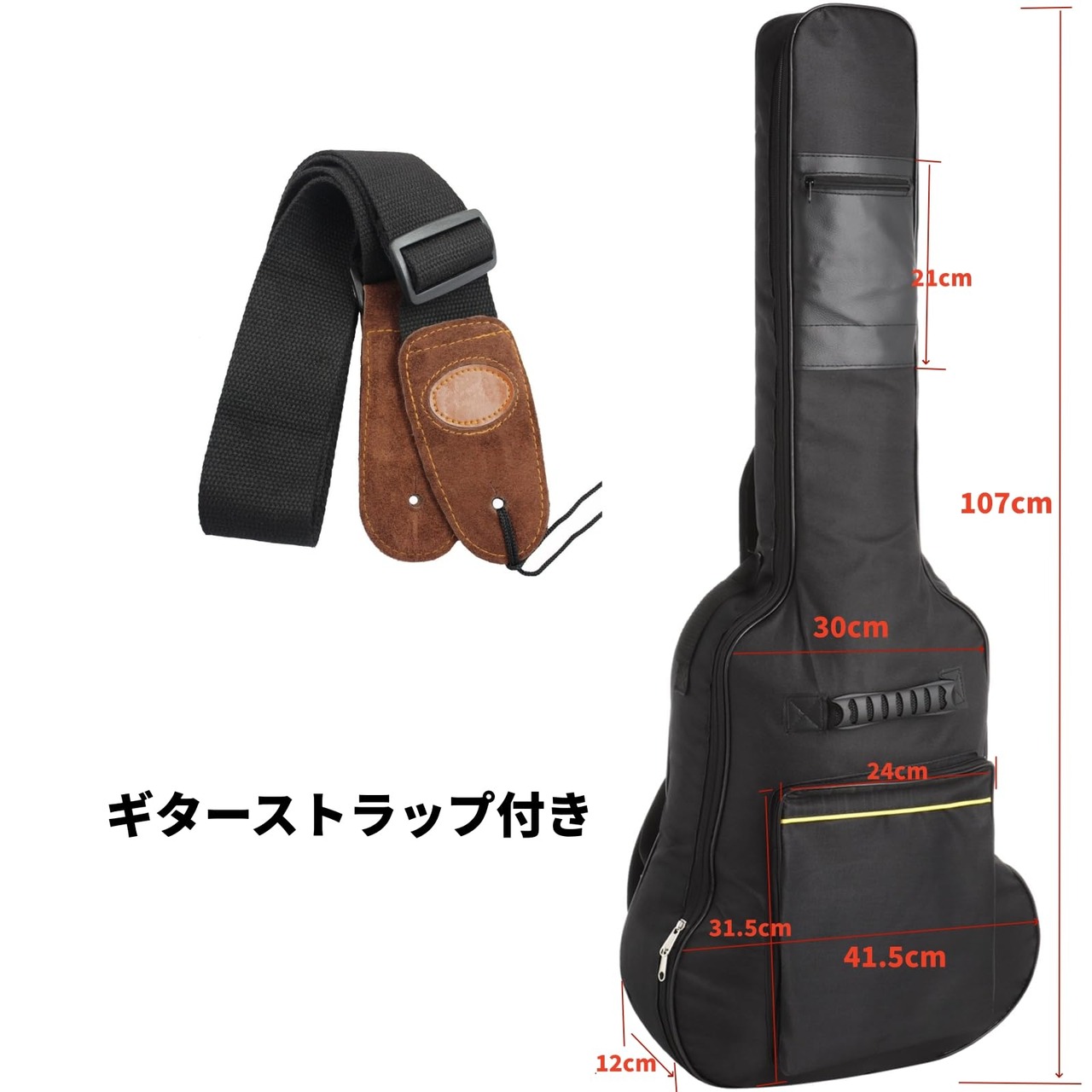 【適度なサイズ】:このギター収納バッグは、一般的な41インチのアコースティックおよびクラシックギターに適しています。楽器にぴったりなサイズで、旅行や保管中にしっかりと保護します。
