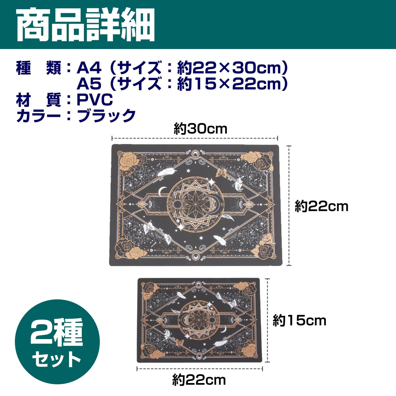 サイズ違いの2種セット:A4サイズとA5サイズの2種類のカッターマットがそれぞれ1枚ずつ揃ったセットですので、作業内容や用途に合わせて使い分け可能です。両面印刷タイプのカッターマットで、表面は魔法陣のデザイン、裏面は方眼入りのデザインとなっております。
