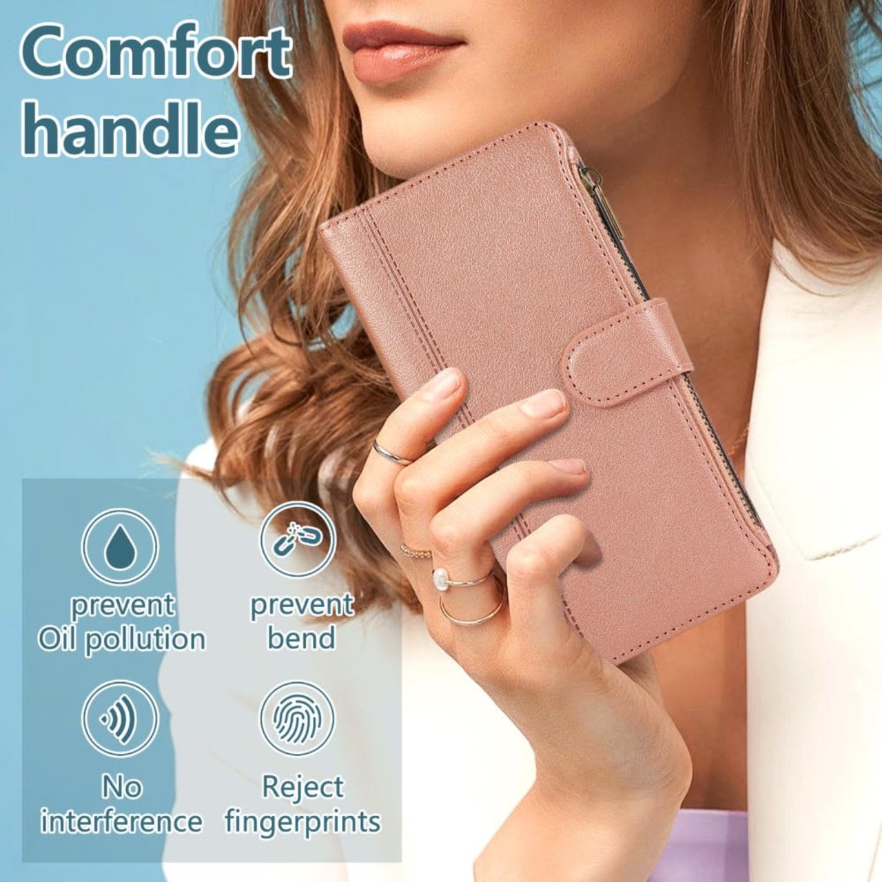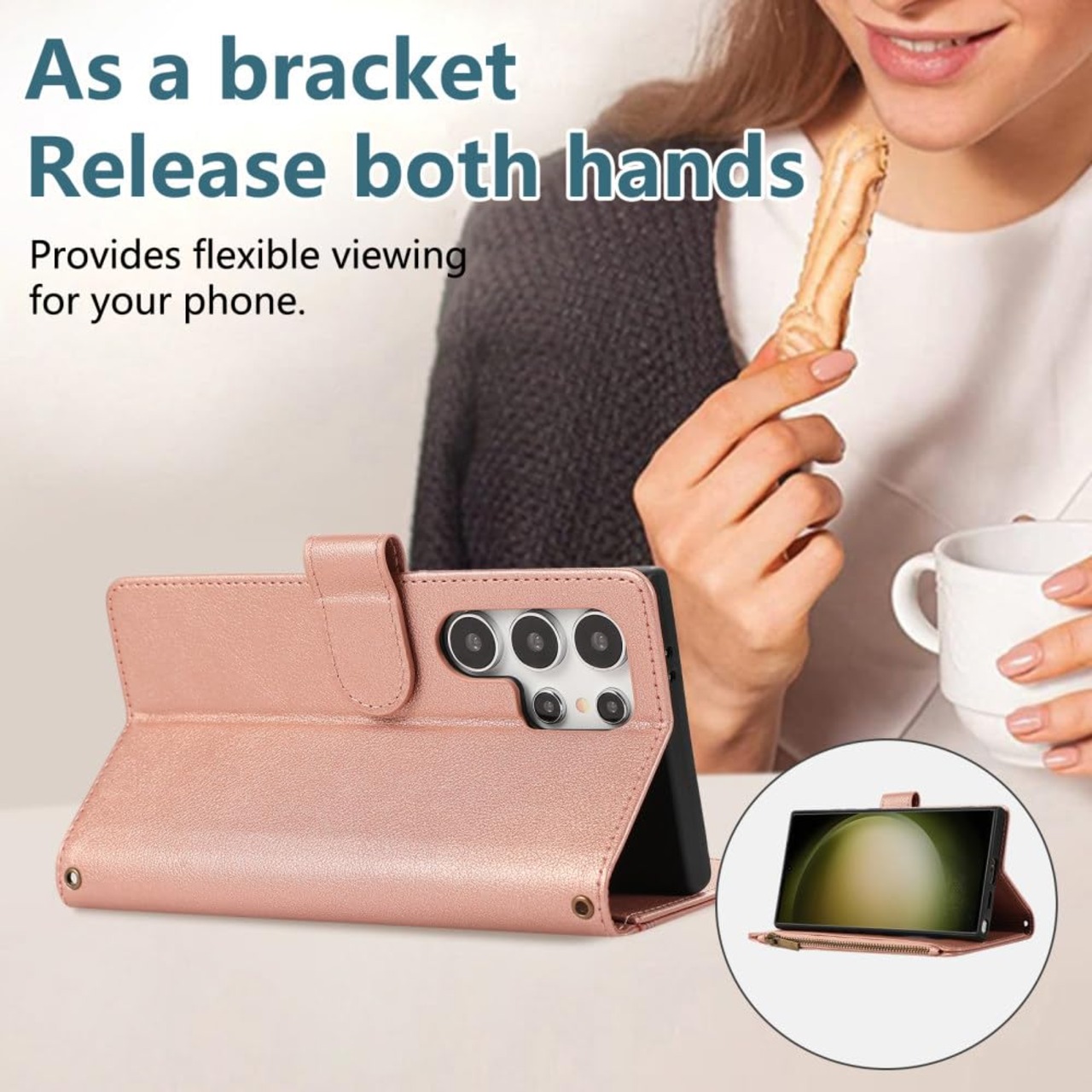 Galaxy S23FE 用ケース クロスボディ ジッパー カード ソルト ウォレット レザー ストラップ バッグ、レッド、Galaxy S23FE 用ケース