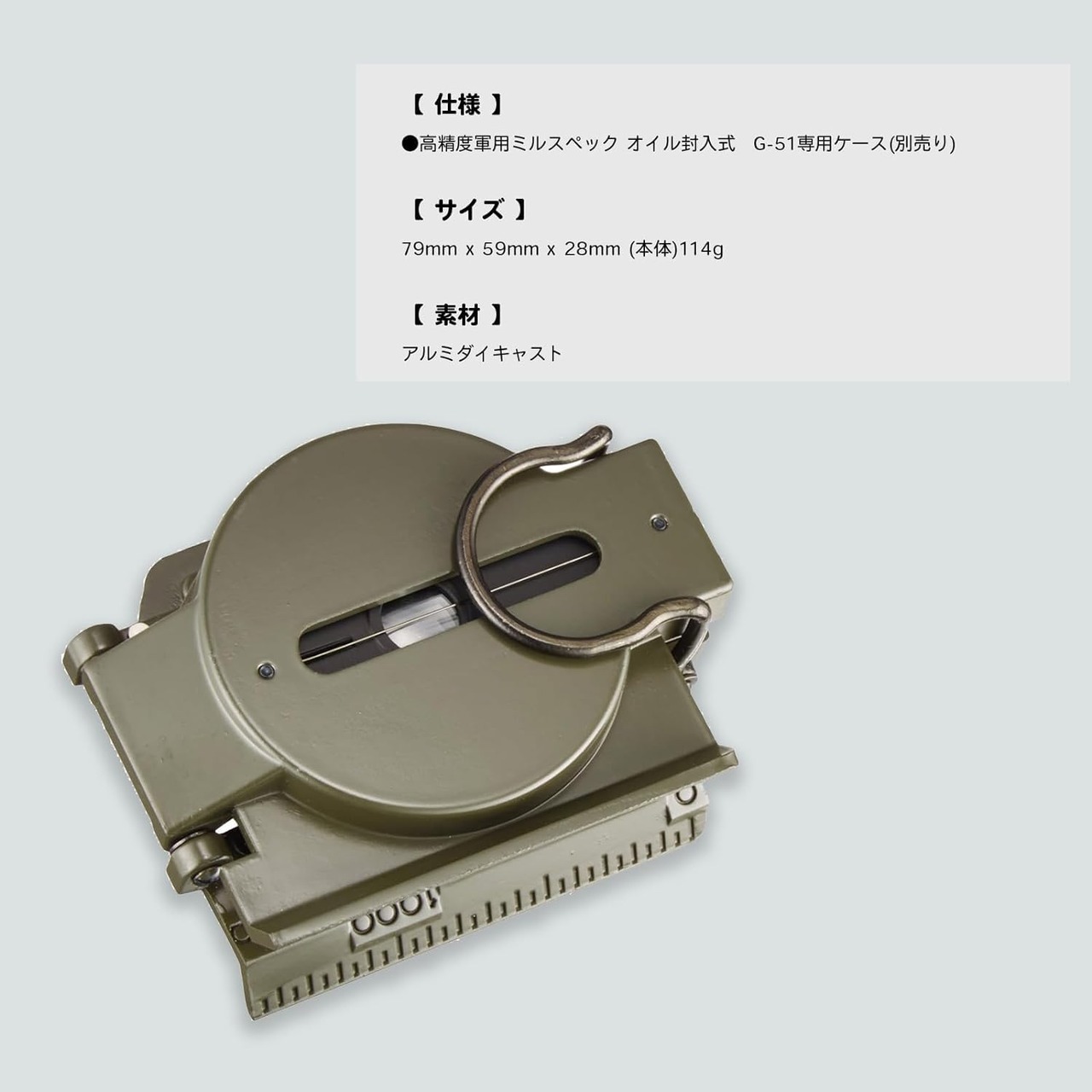 MIZAR-TEC(ミザールテック) コンパス 高精度軍用ミルスペック レンザティックコンパス 専用帆布ケース付き オイル式 日本製 カーキグリーン G-51SET