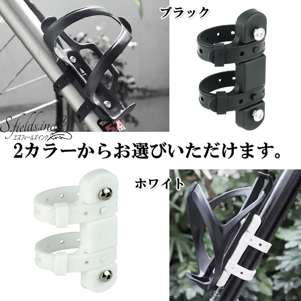 ボトルケージを後付け追加できる自転車用シリコン製ボトルケージアダプターです。ブラックとホワイトの2カラーからお選びいただけます。