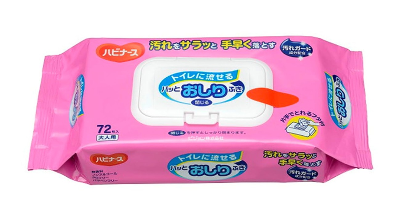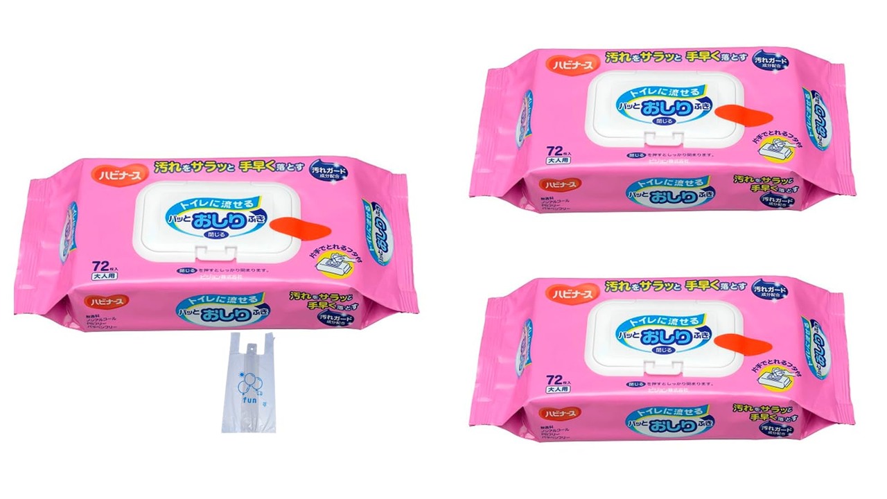【3個セット】ハビナース トイレに流せる パッとおしりふき 72枚入 介護 大人用 高齢者 オリジナルレジ袋付き おしりふき ノンアルコール トイレに流せるお尻拭き 流せる お尻拭き
