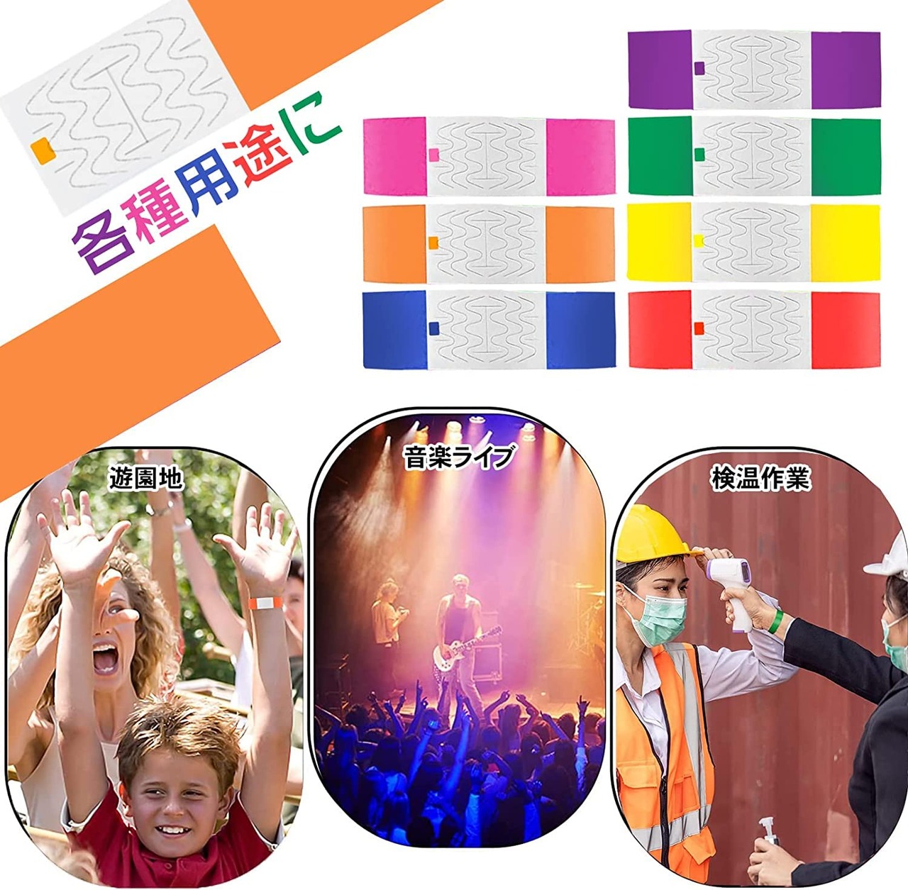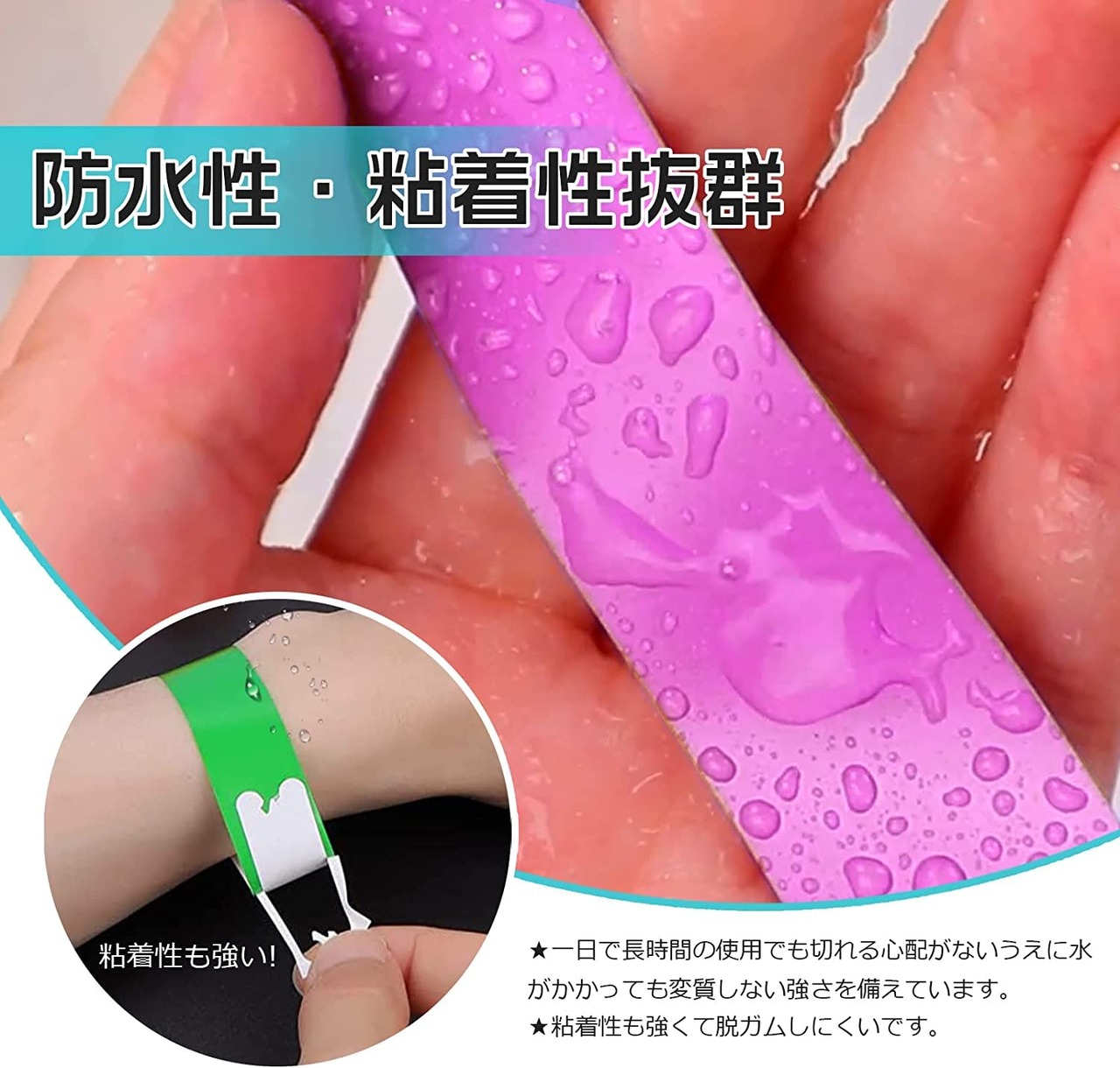 使い捨てリストバンド イベント用リストバンド 100枚 7色選択可能 防水 耐引裂き 入場 バンド テープ カラーリストバンド 人数カウント 再入場管理に ワンタッチ装着 水場でも適用 音楽ライブ 遊園地に対応 | mbc