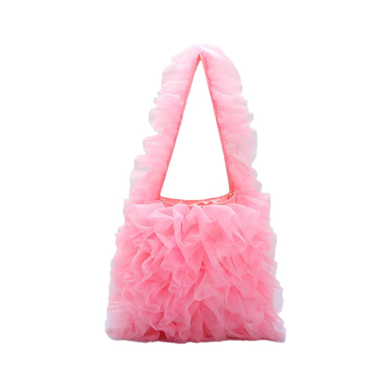 XACKWUERO レディース レースショルダーハンドバッグ ソフトガーゼ脇下バッグ レースフリルスタイル トートバッグ, ピンク