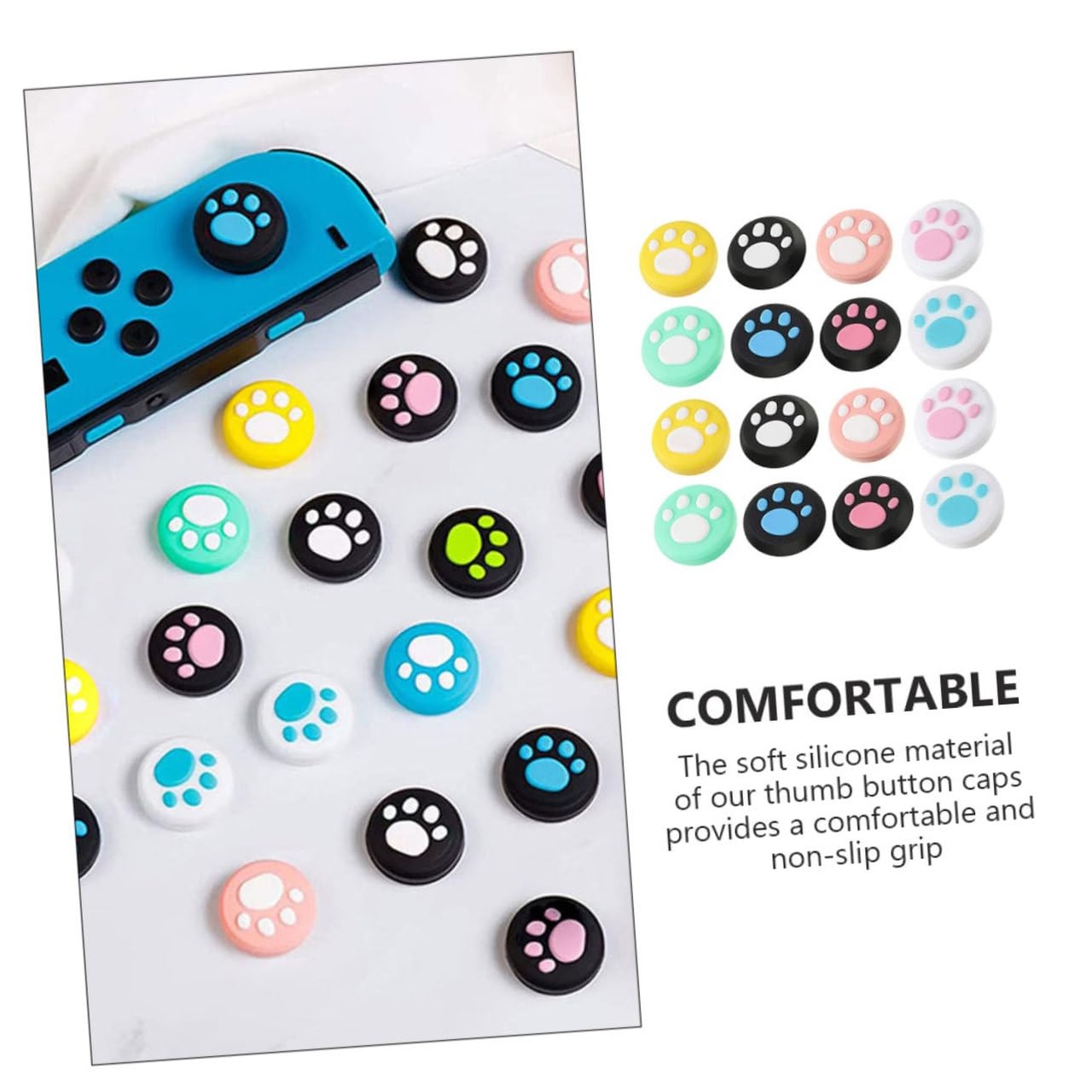 16個 ニンテンドースイッチコントローラーロッカーキャップ保護キャップ ジョイスティックボタンカバー ジョイスティックカバー 猫の足のジョイスティック キャップ ジョイスティック