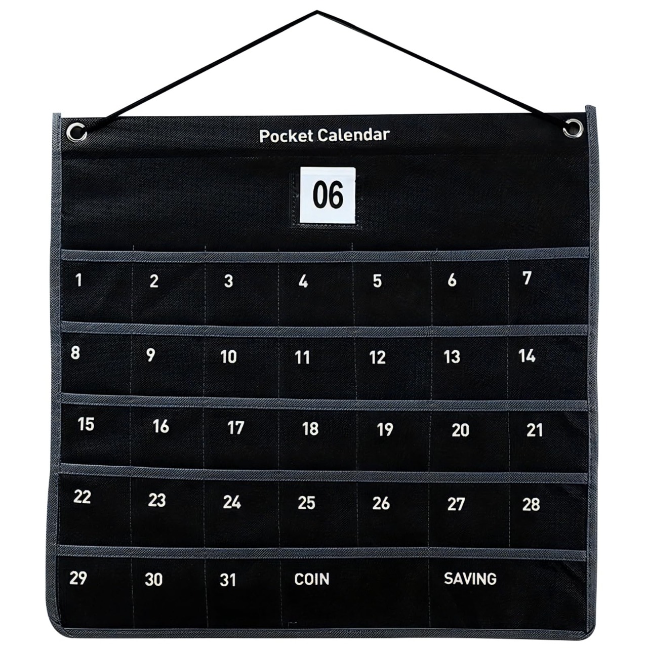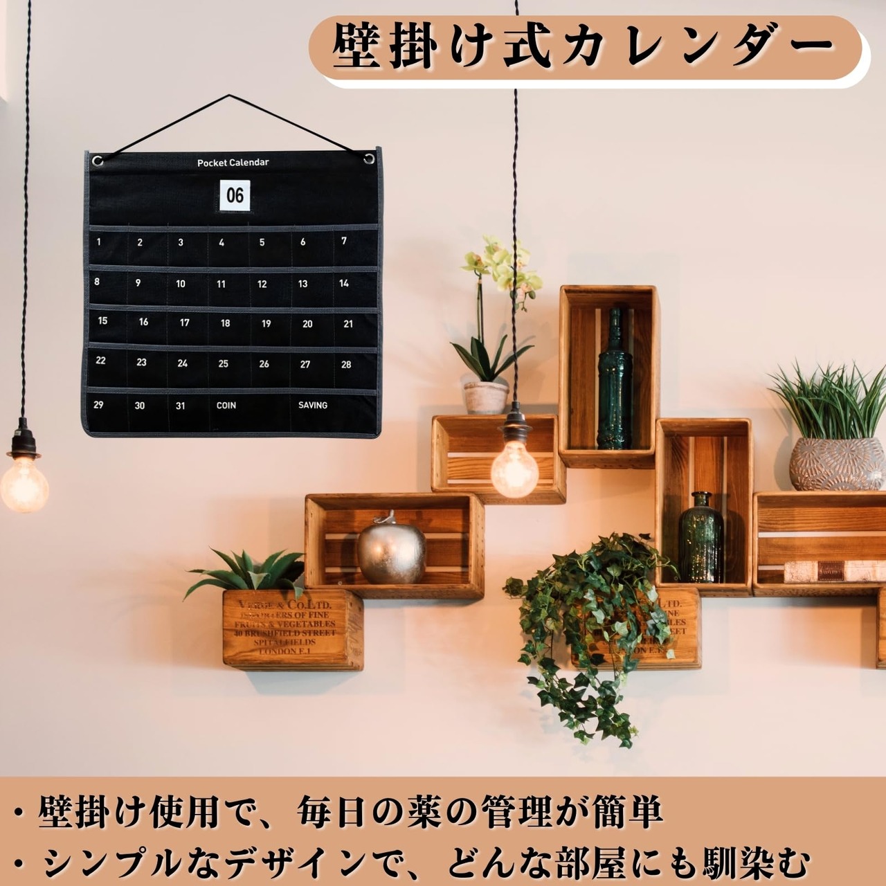 【看護師推薦】 お薬カレンダー 壁掛け ポケット付き 1ヶ月 ウォールポケット 服薬管理 (13.ブラック(不織布))