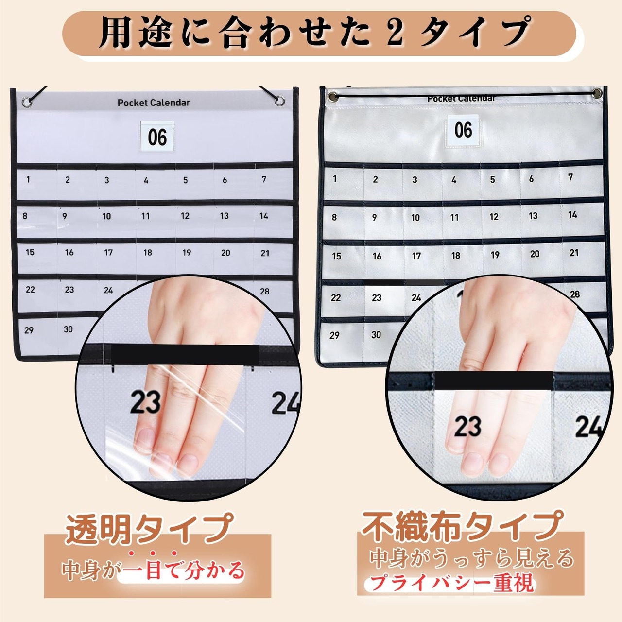 ✅【選べる2タイプ】中身が一目でわかる「透明ポケット」タイプ、プライバシーに配慮した「不織布ポケット」タイプの2種類から用途に合わせてお選びいただけます。さらに、透明タイプはAタイプ(大きな文字で見やすく、丈夫なポールタイプの支柱を採用、背面ポケット付)とBタイプ(小さめの文字で薬が見やすく、背面ポケットなしのシンプルタイプ)をご用意しました。