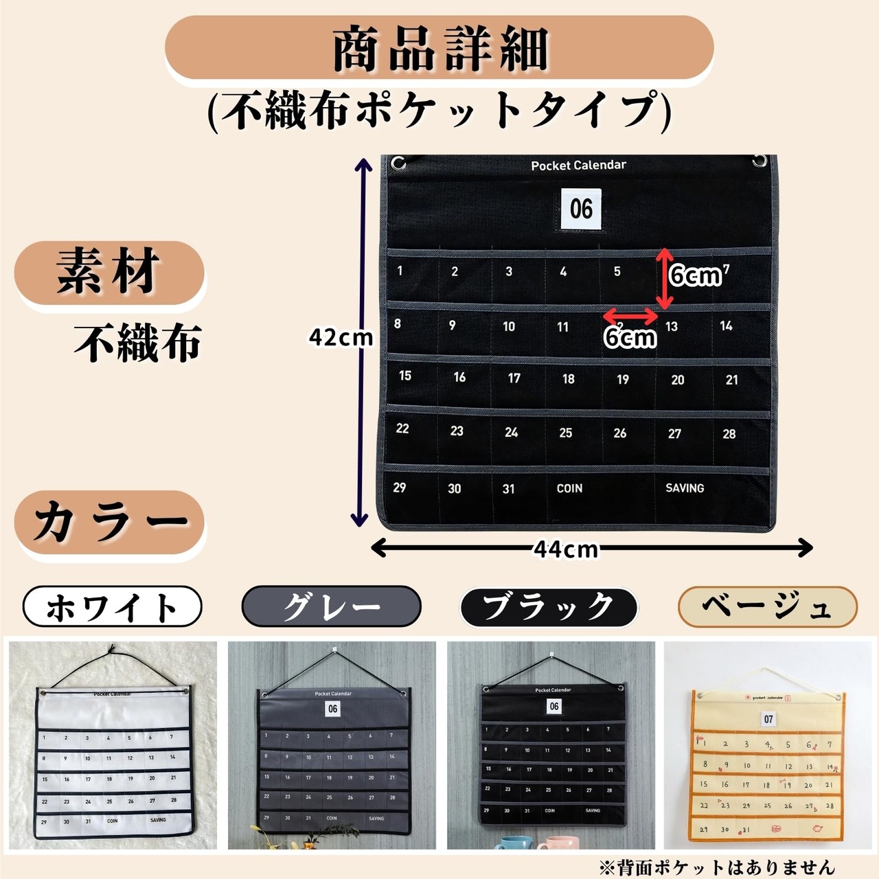 ✅【使いやすいサイズ】本体は縦42cm×横44cm(透明Aタイプは縦44cm×横44cm)、ポケットは6cm×6cmで、見やすく使いやすい大きさです。