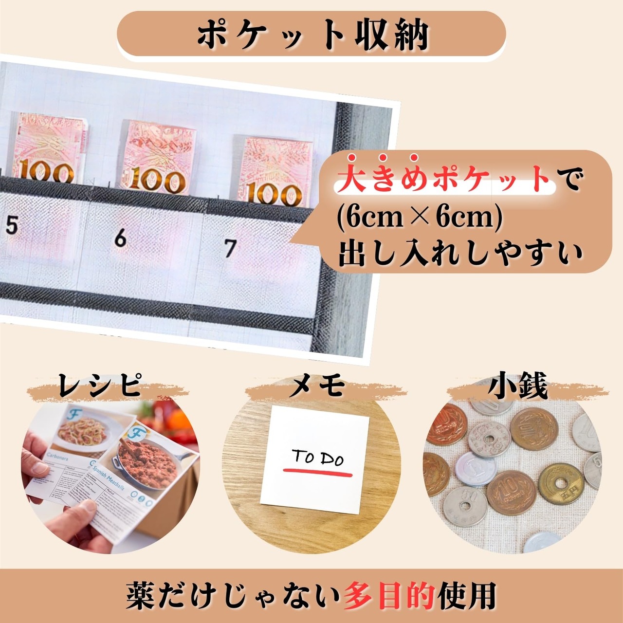 ✅【ポケット収納】33個のポケットが付いており、1ヶ月の薬の管理が可能です。レシピやメモを入れるなど多目的に使用できます。