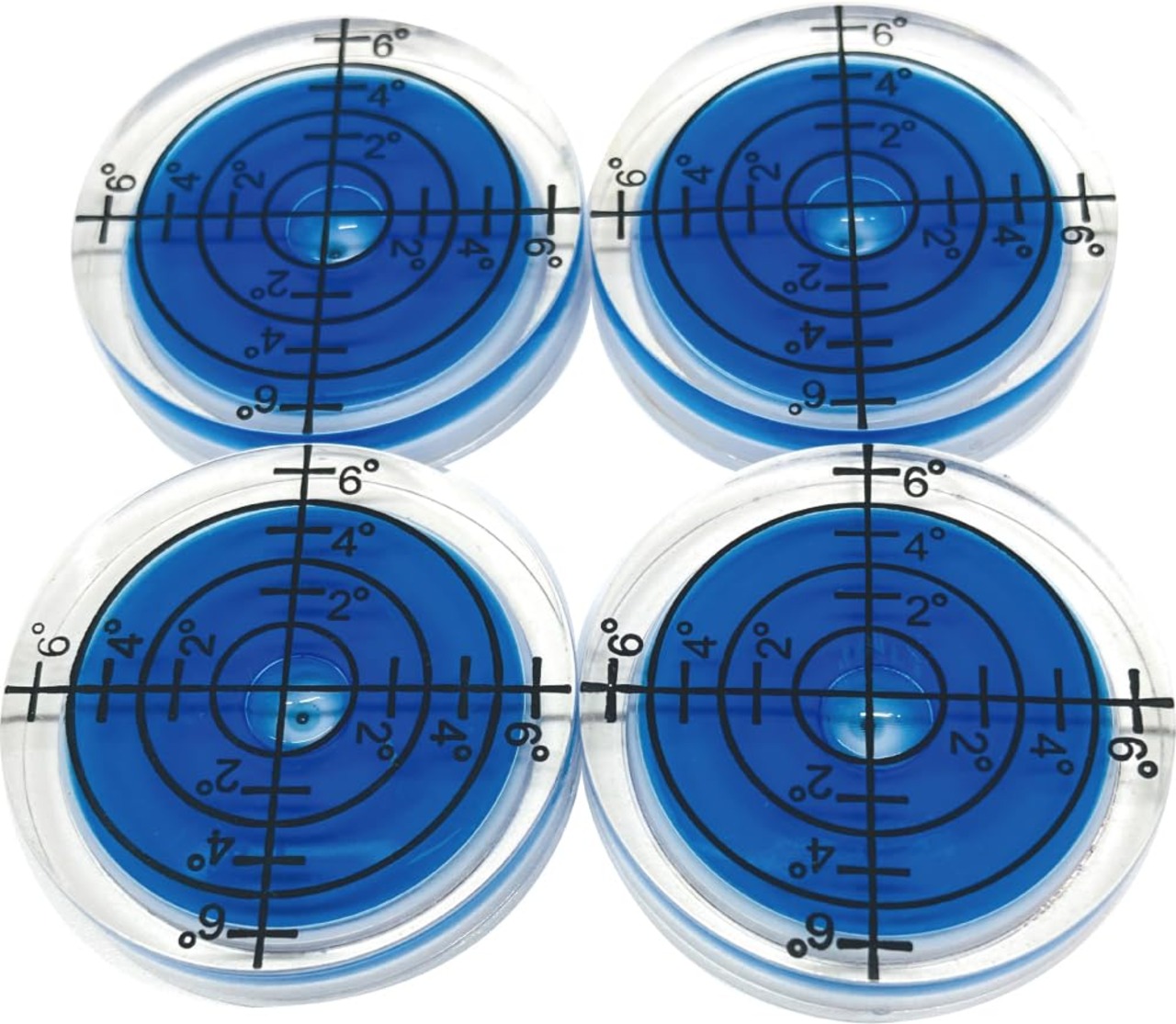 水平器 水準器 ブルー 4個セット 高精度 丸型 小型 ミニ 目盛り付き わずかな傾きをキャッチ DIY 家具組み立て 棚設置 建築作業 ゴルフマーカー コンパクトサイズで持ち運び 取付に便利