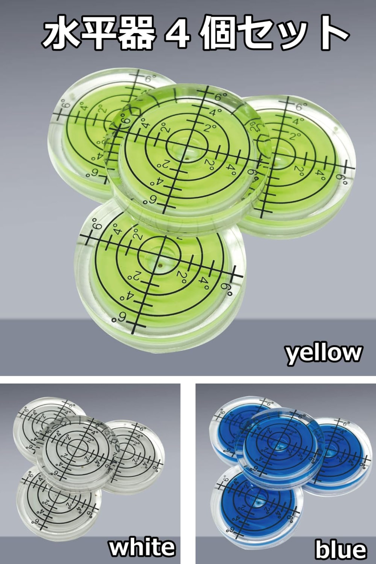 水平器 水準器 ブルー 4個セット 高精度 丸型 小型 ミニ 目盛り付き イエロー/ブルー / ホワイトの3色のラインナップ わずかな傾きをキャッチ DIY 家具組み立て 棚設置 建築作業 ゴルフマーカー コンパクトサイズで持ち運び 取付に便利 (ブルー)