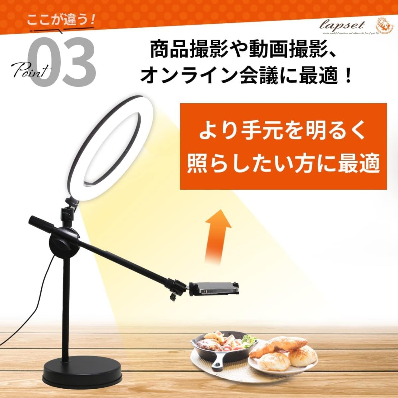 lapset 【iPhone専門誌 雑誌掲載モデル】 スマホスタンド 俯瞰撮影 LED ライト付き 新スマホホルダー 大リング卓上タイプ