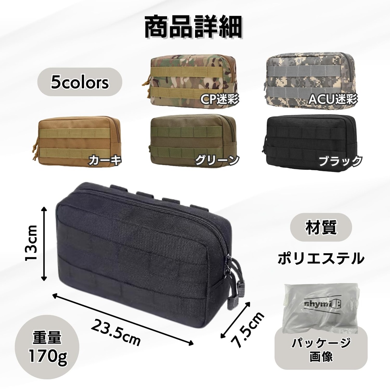 カラー:ブラック、カーキ、グリーン、ACU迷彩、CP迷彩 使用用途:バイク、オートバイ、自転車、ウエストポーチ等